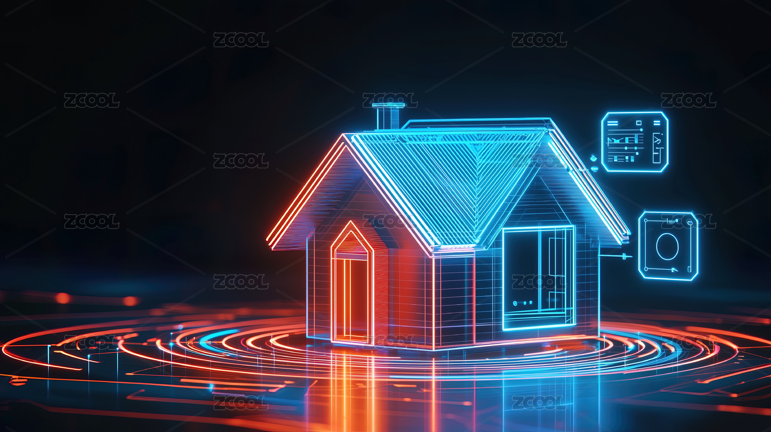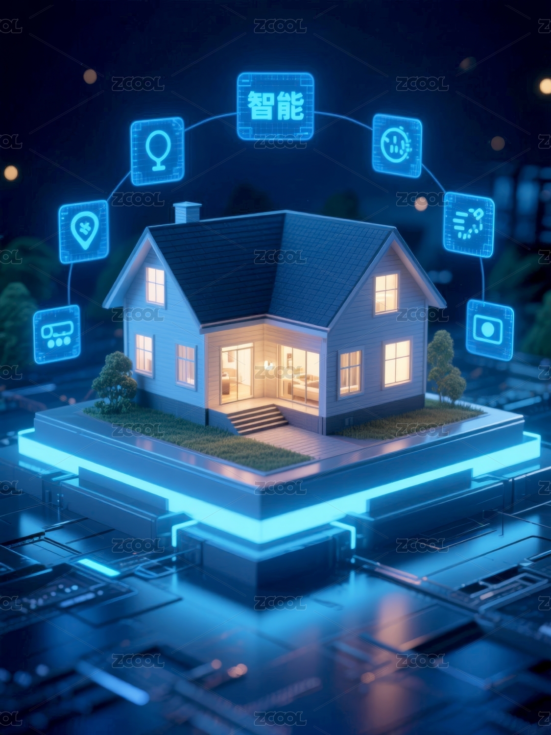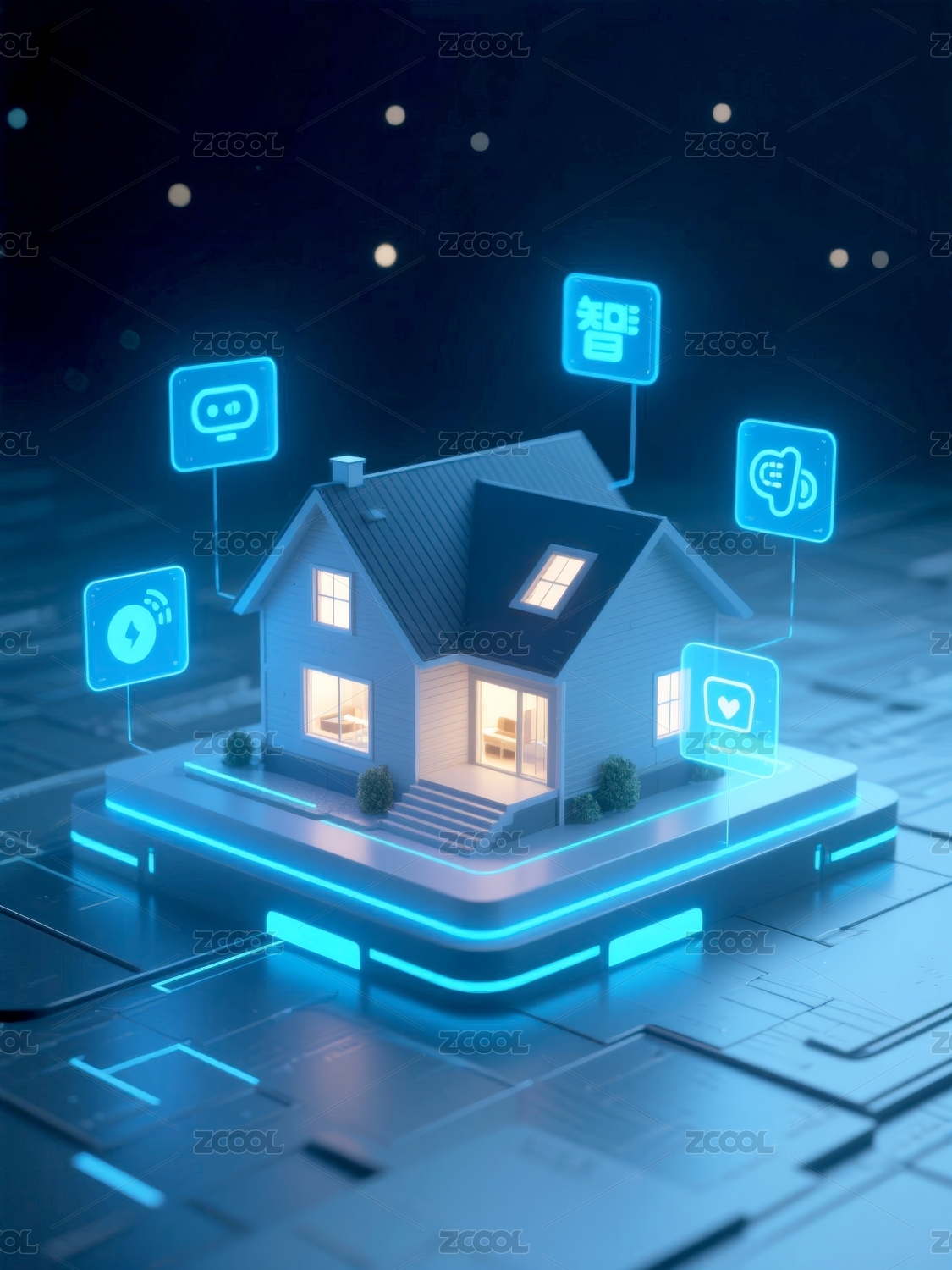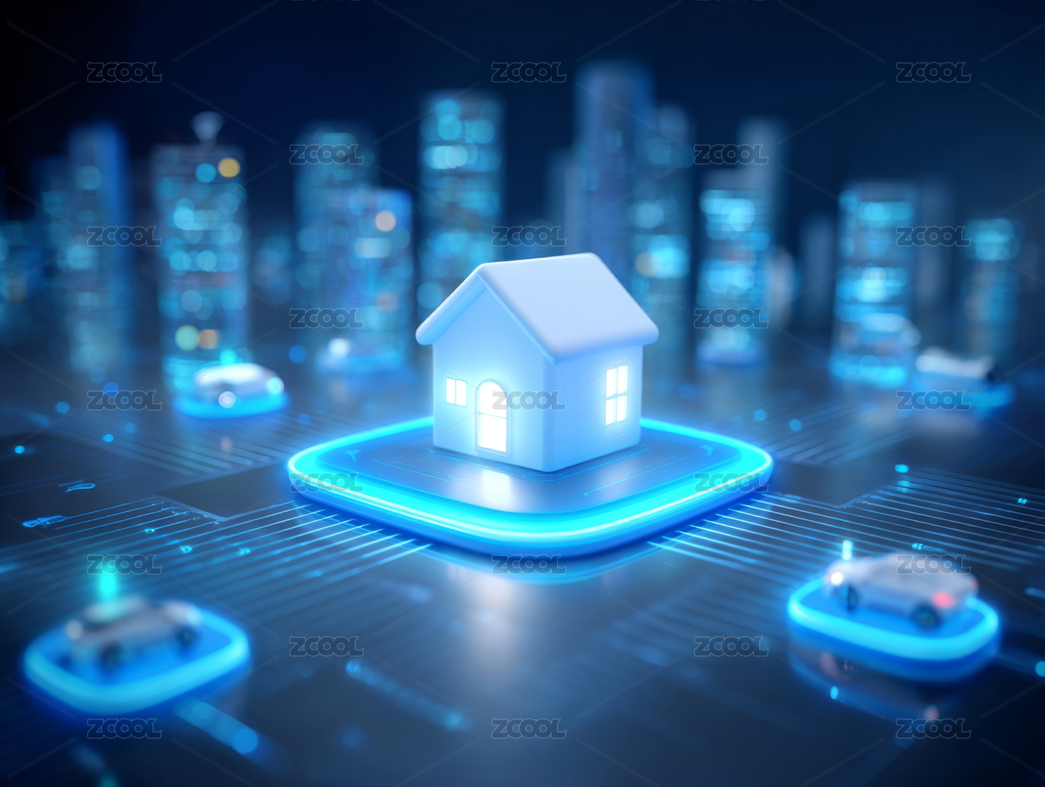 主视觉,场景,展示,未来,科技,智能,家居,灯光,房屋,蓝色