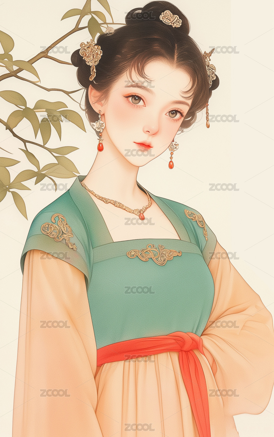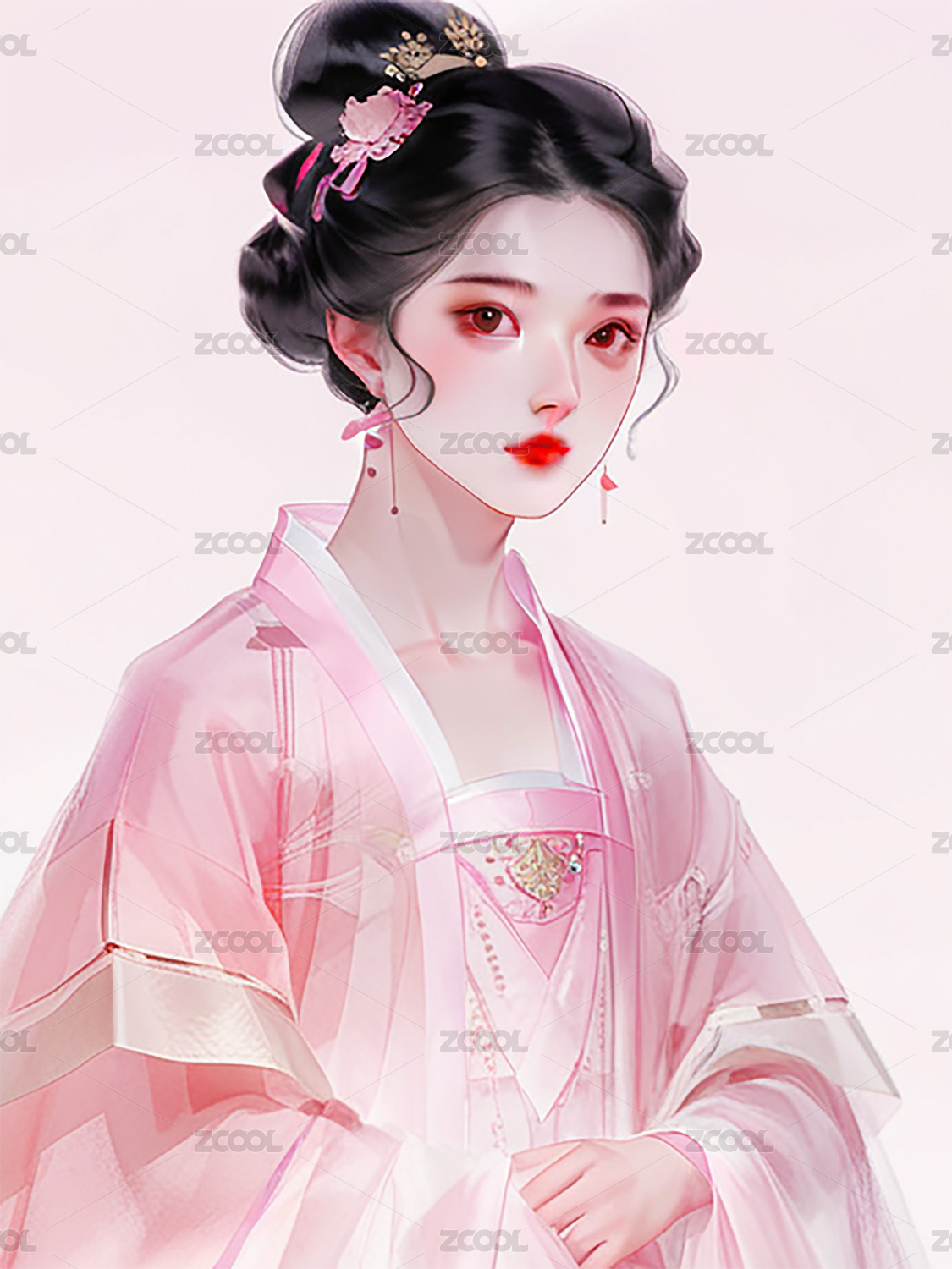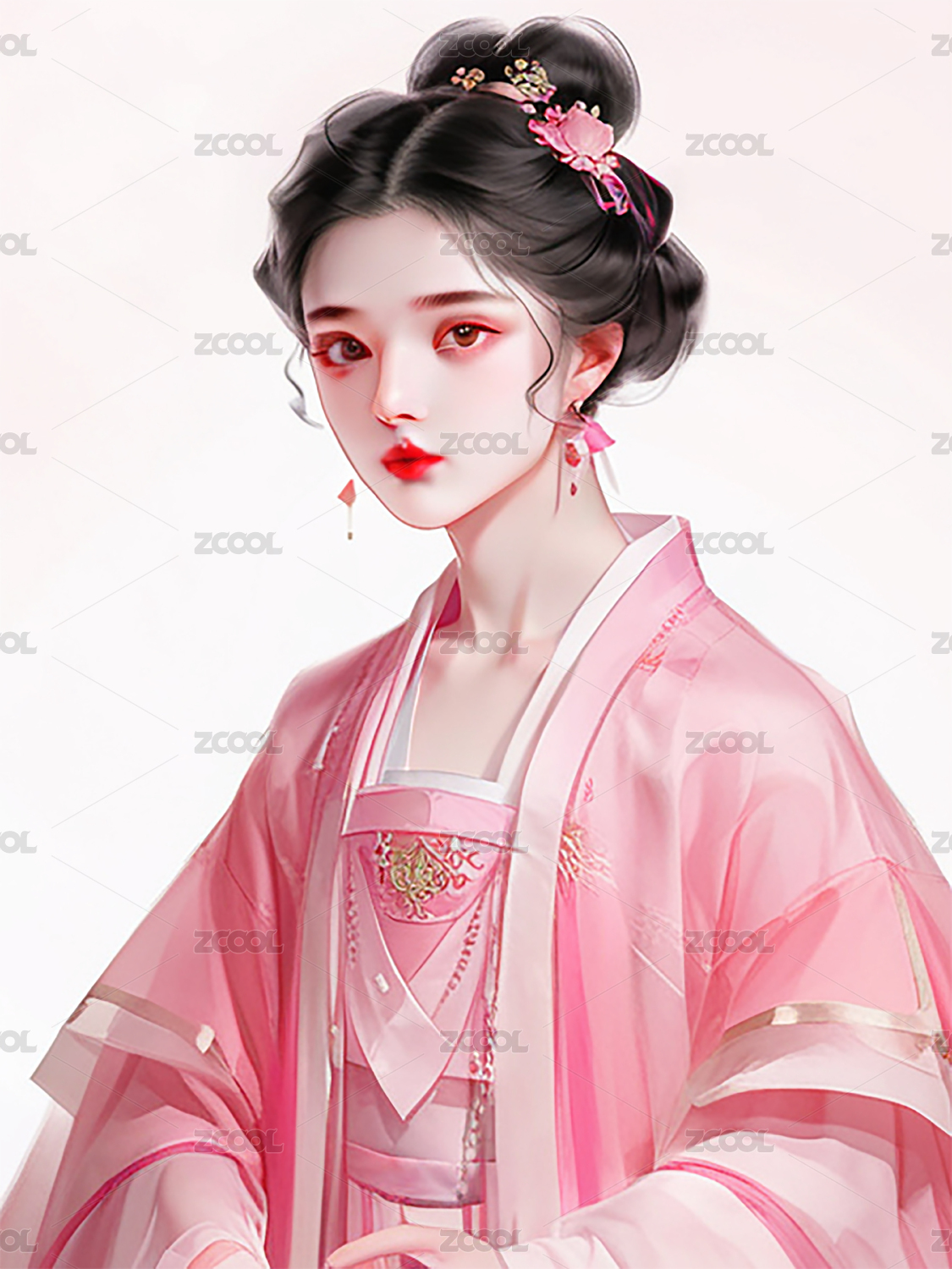 人物, 发饰, 荷花, 绿色衣服, 粉红色腰带