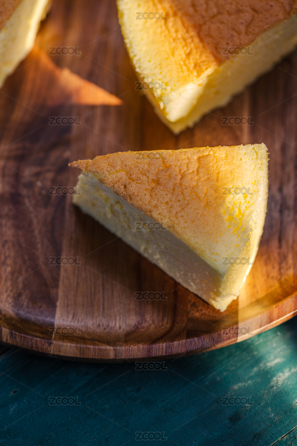 装在木盘子里的一些轻乳酪蛋糕