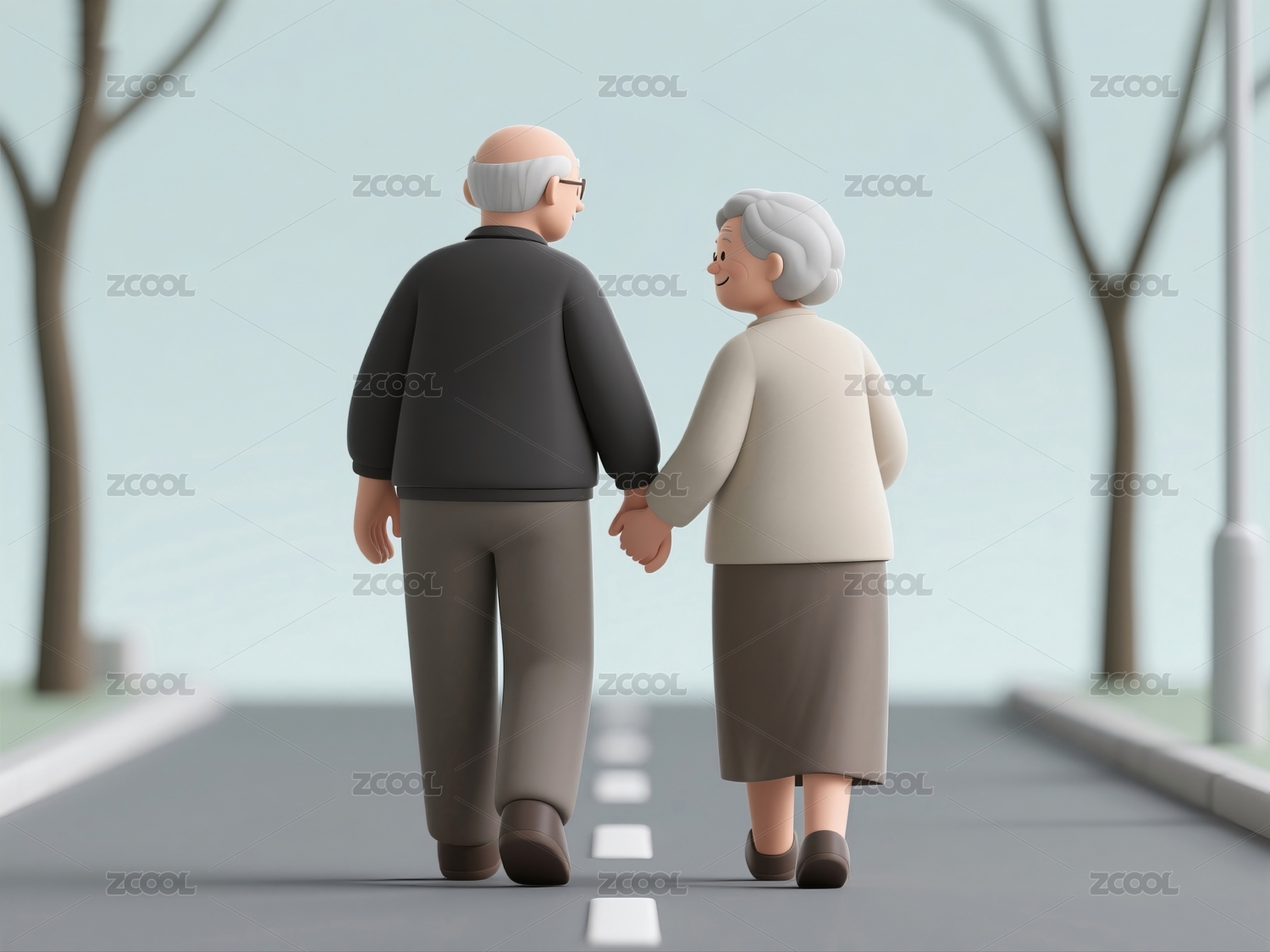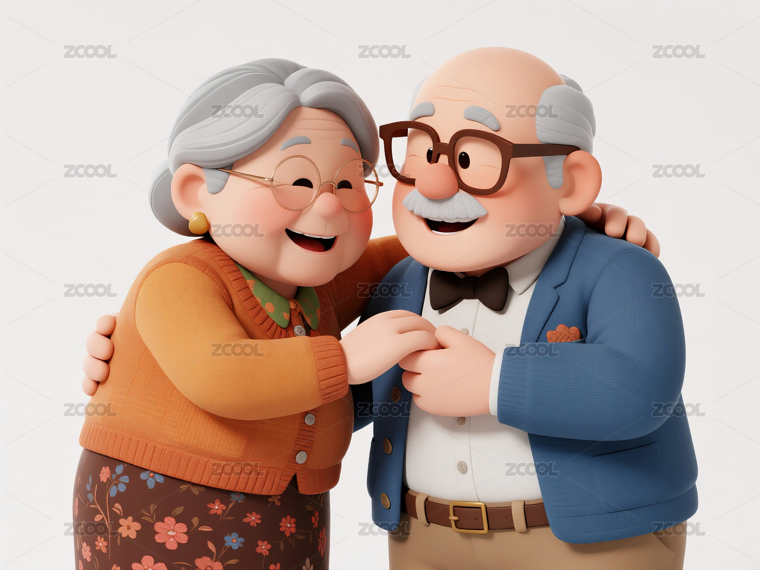卡通,温馨,场景,和睦,主视觉,商业,壁纸,浪漫,老年,夫妇