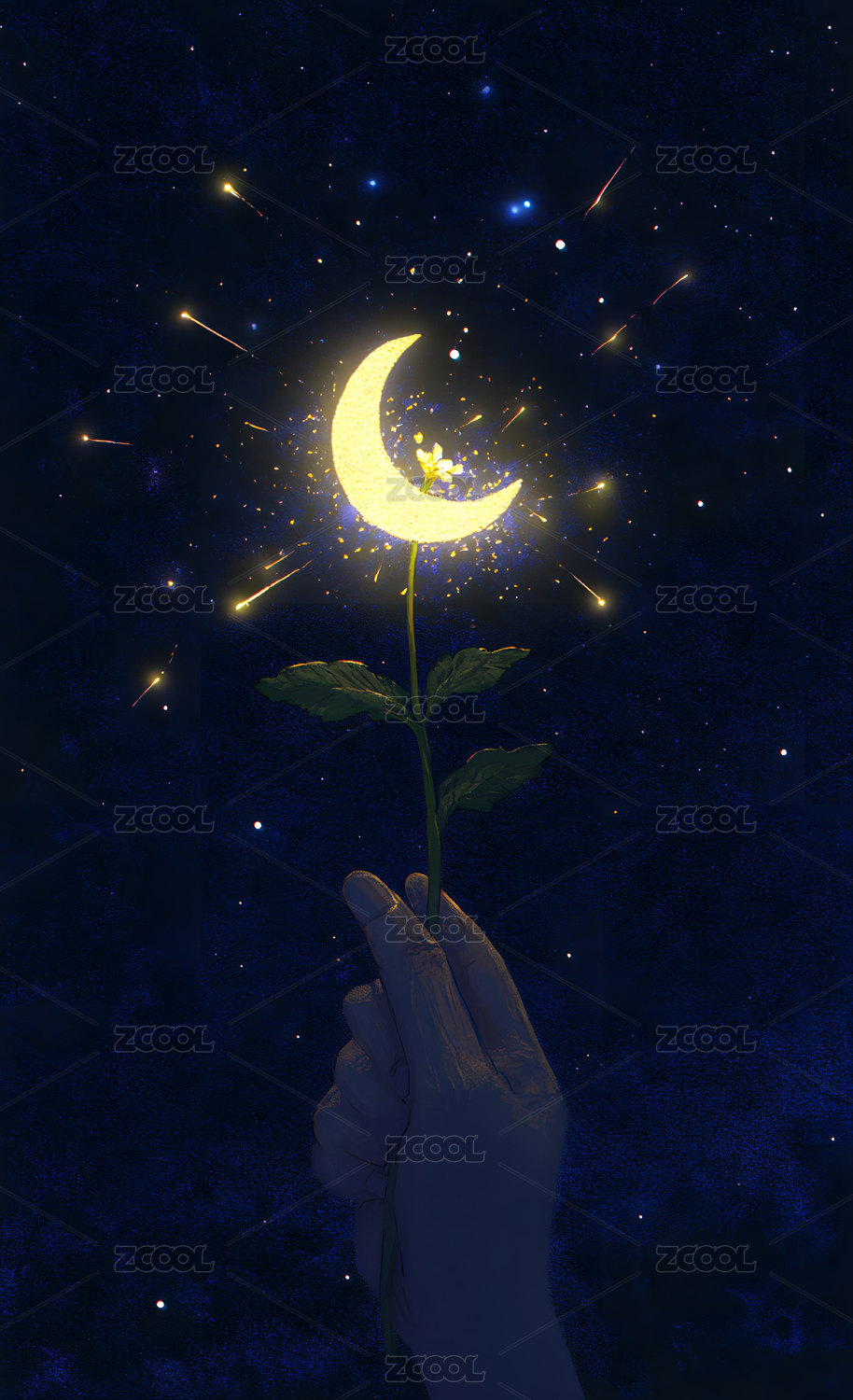 水彩,花卉,发光,星夜,宇宙,梦幻,浪漫,星空,花朵,手绘