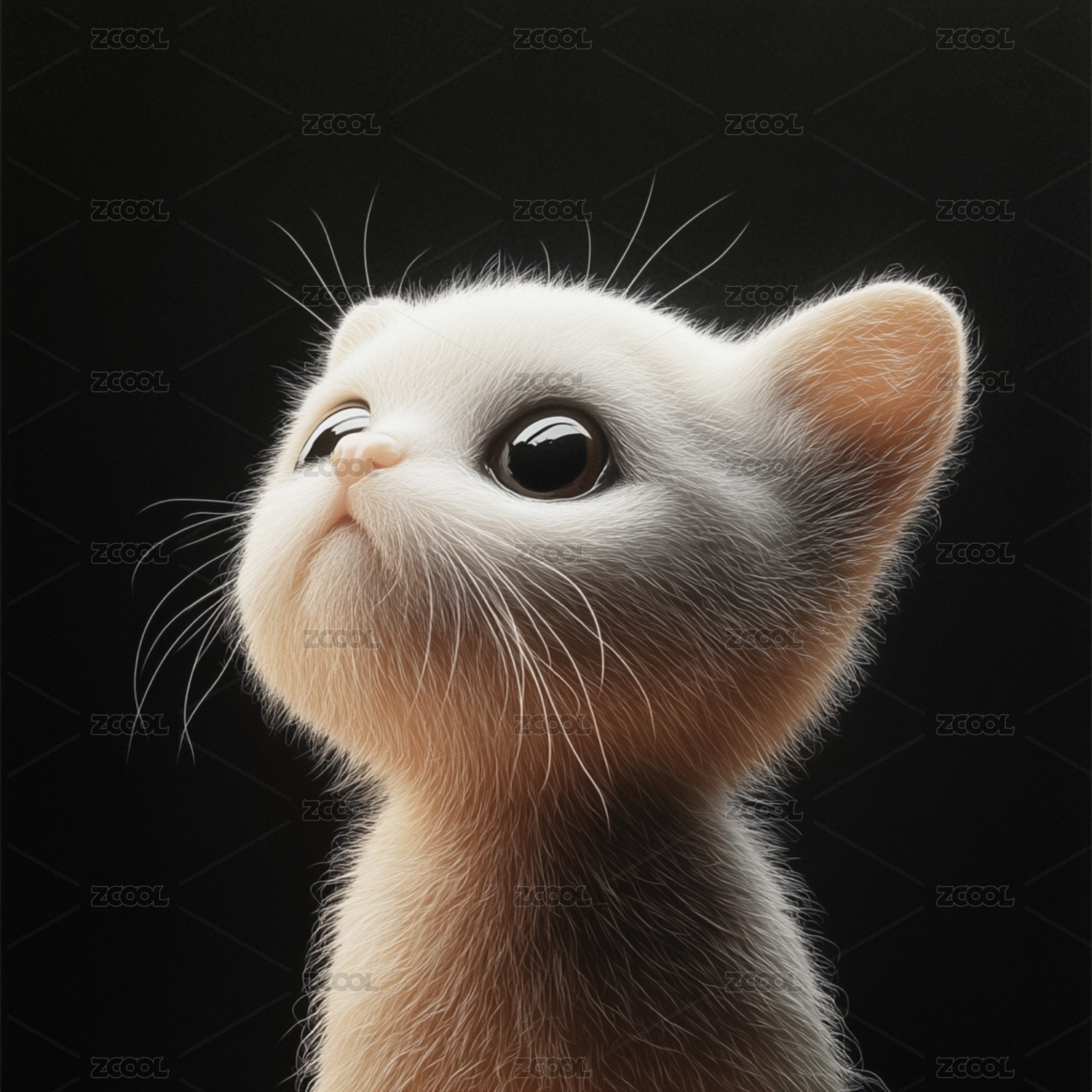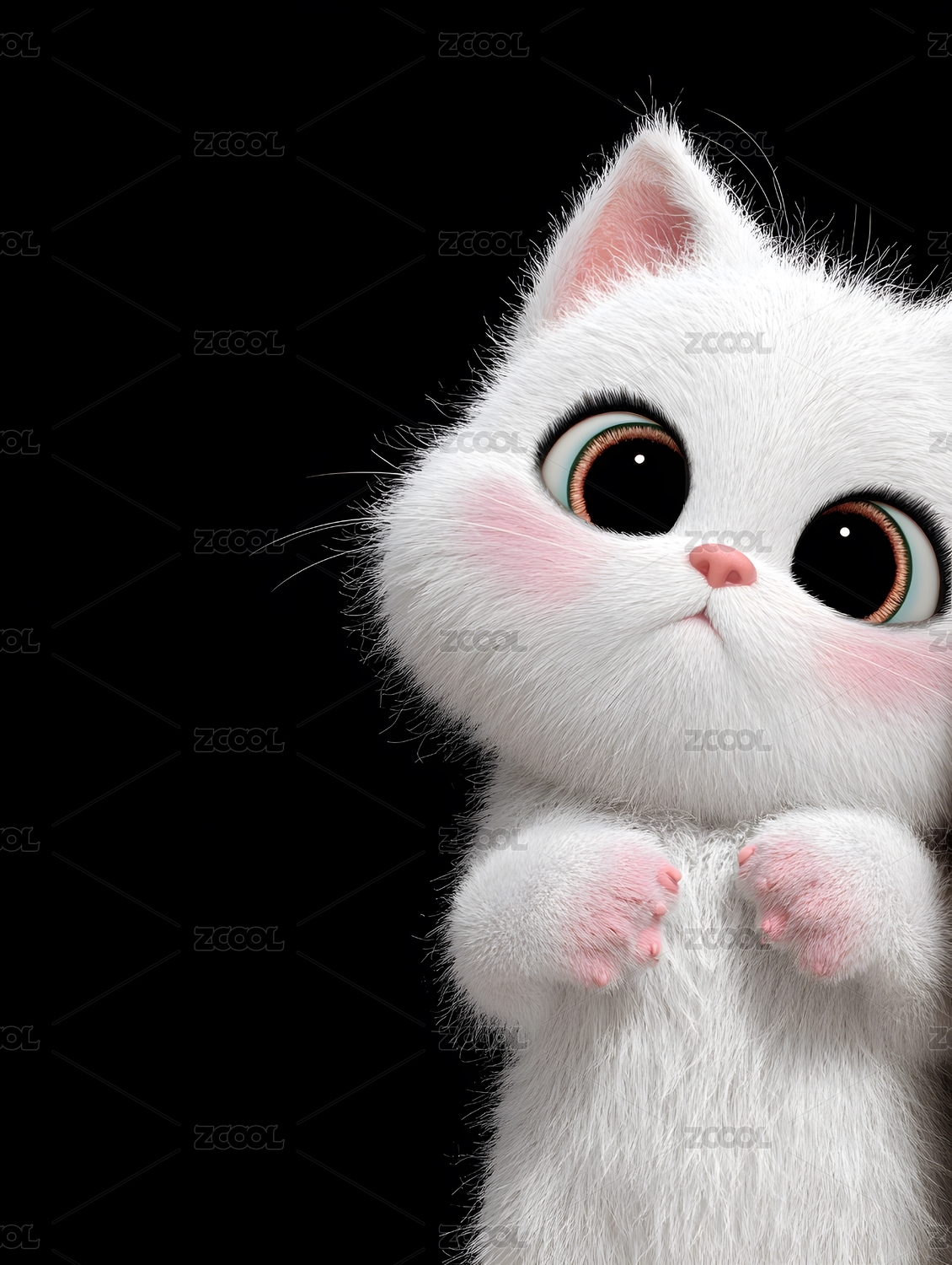 超萌小白猫3D渲染图