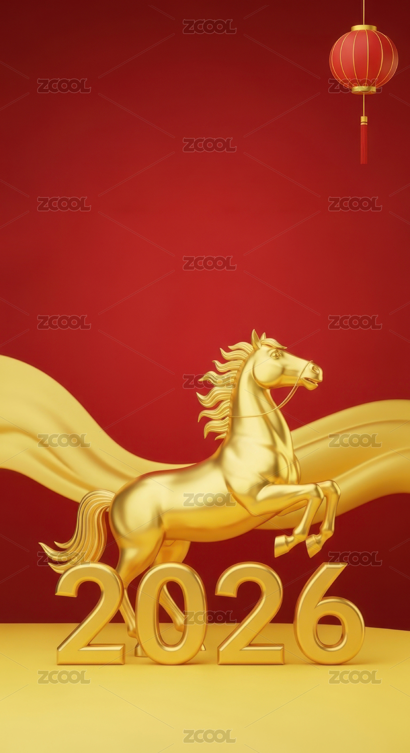 3D,卡通,2026,金色,马,骏马,红色,新中式,中国风,传统