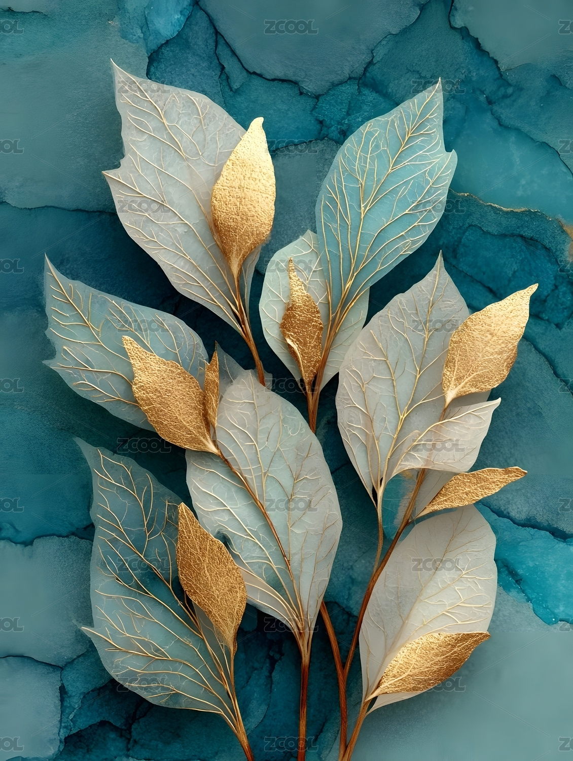 数码金箔叶子植物装饰抽象图形海报网页背景