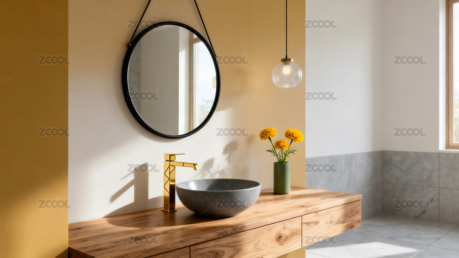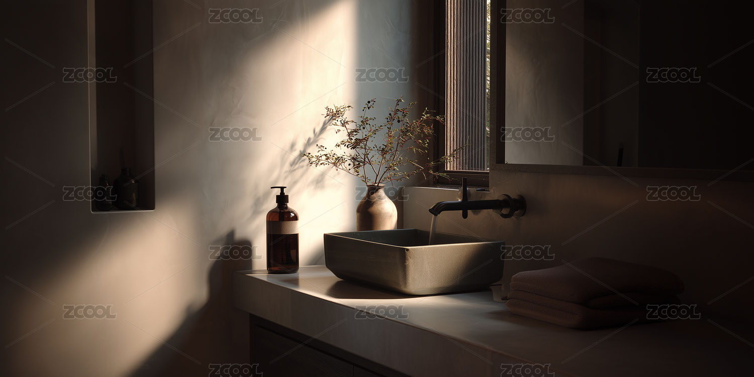 日式禅意浴室角落柔和光