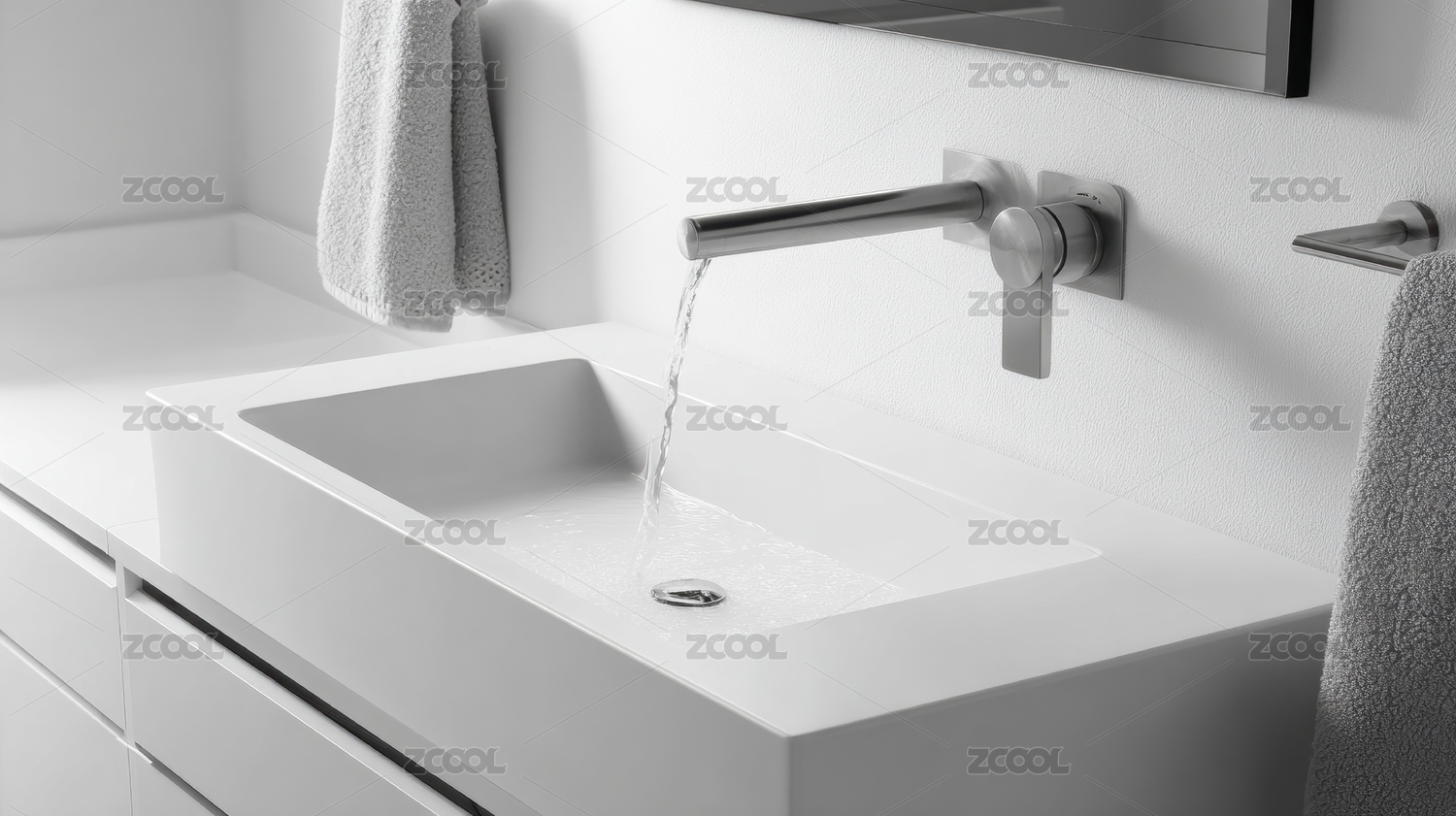 现代浴室洗手台流水特写
