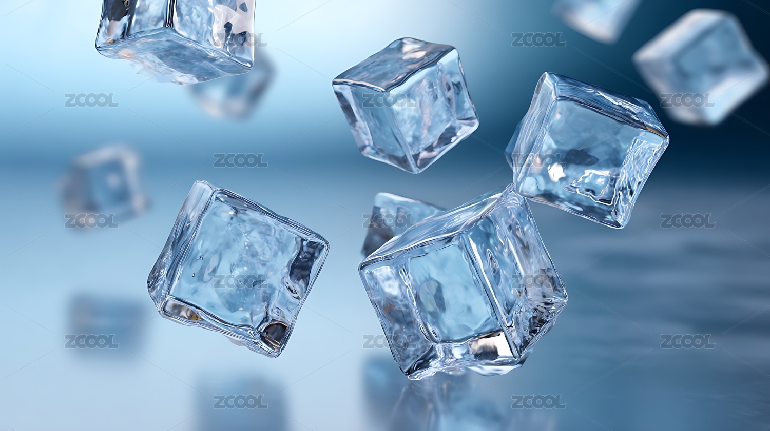 摄影,微观,冰块,立方,透明,质感,冷冽,光影,蓝调,背景