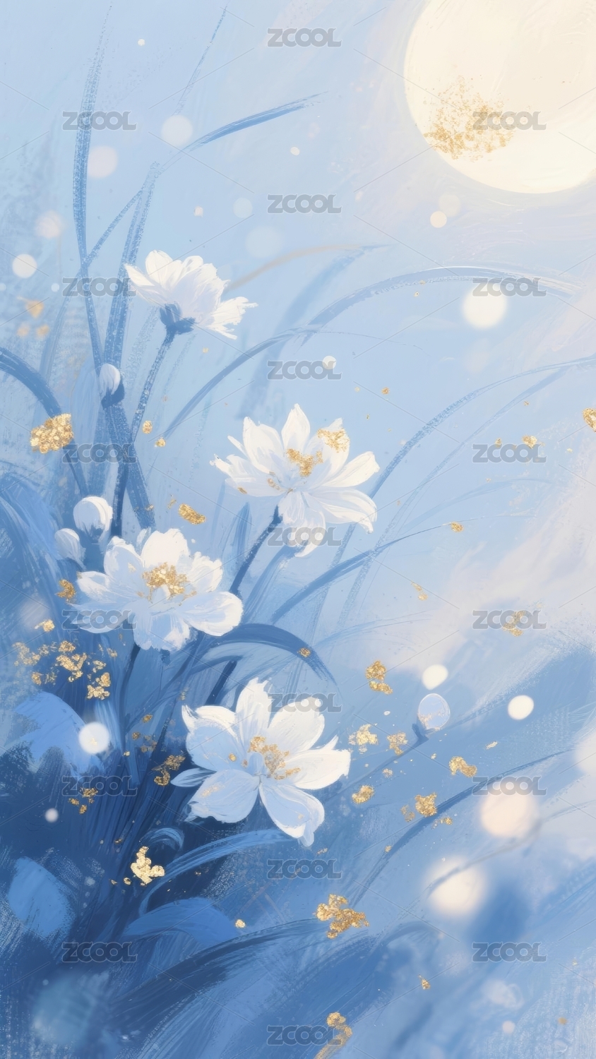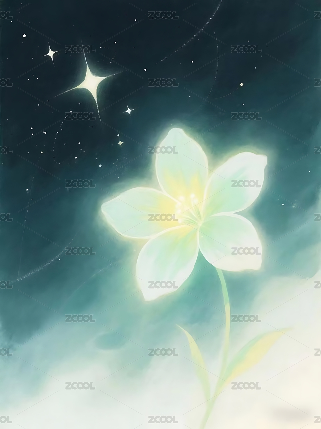 水彩,花卉,发光,星夜,宇宙,梦幻,浪漫,星空,花朵,手绘