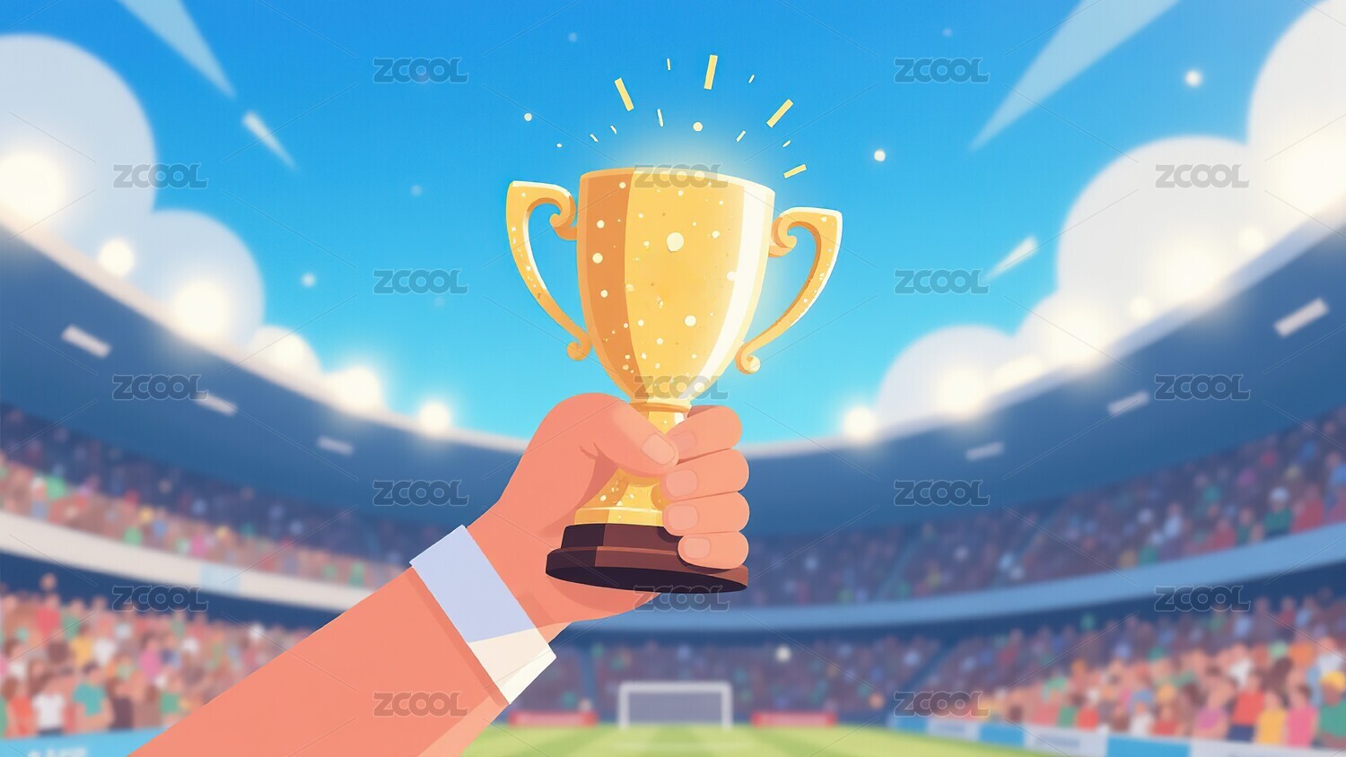 卡通人物手持金杯奖杯