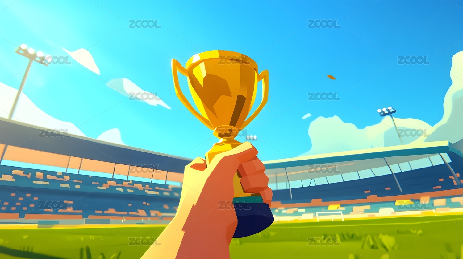 3D卡通手持冠军奖杯场景