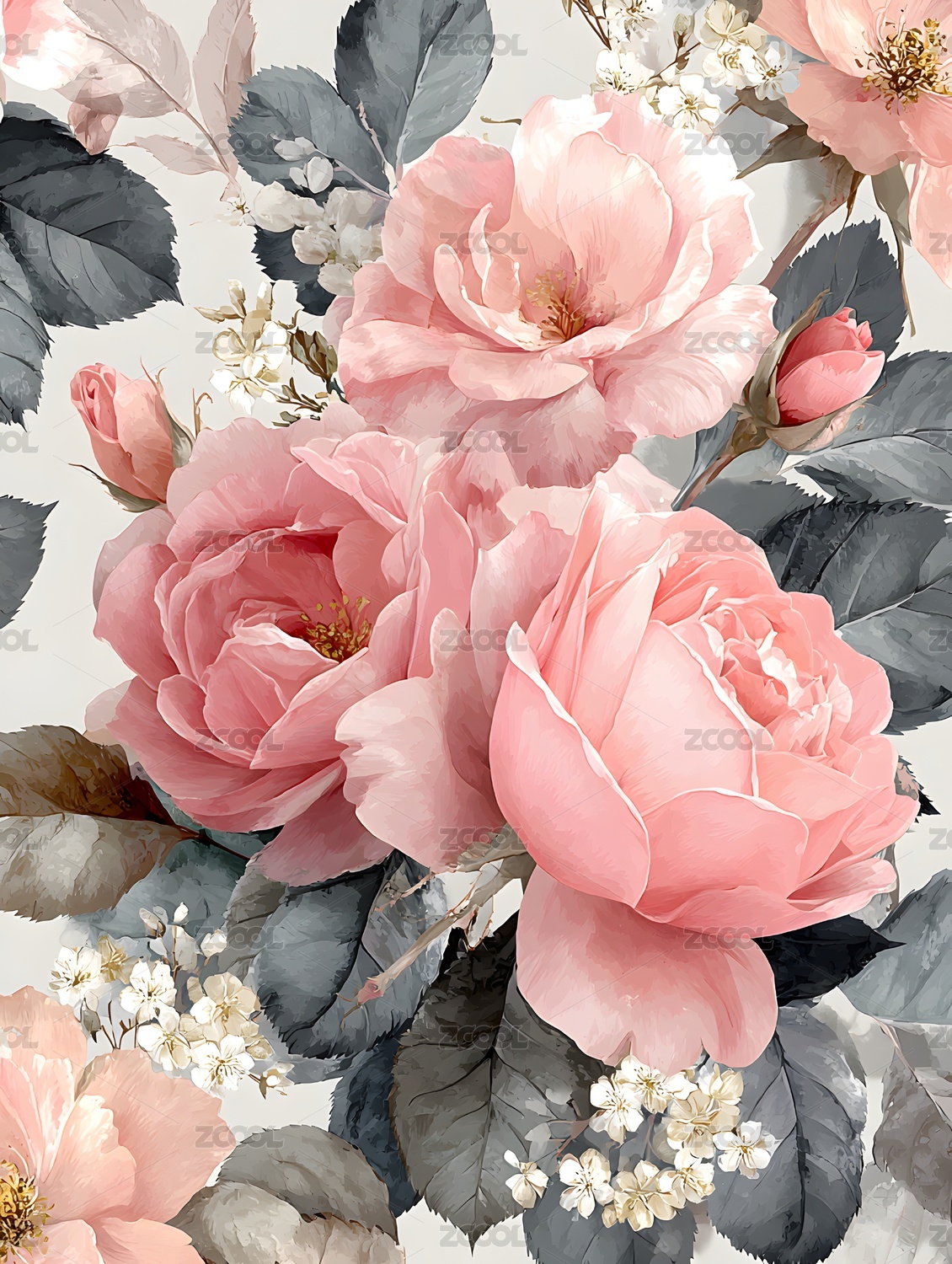 花朵,花瓣,花卉,植物,叶子,花束,绘画,绿叶,水彩,白花