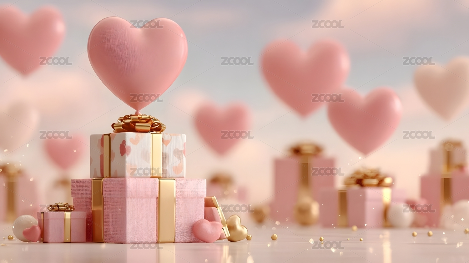 装饰,金色,粉色,爱心,礼物,气球,蝴蝶结,节日,浪漫,布置