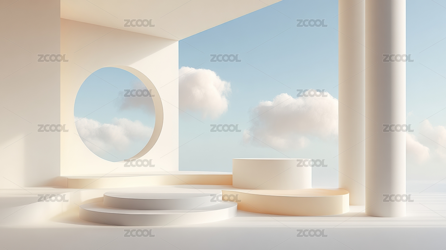 3D抽象空间极简空间简约风格现代建筑室内