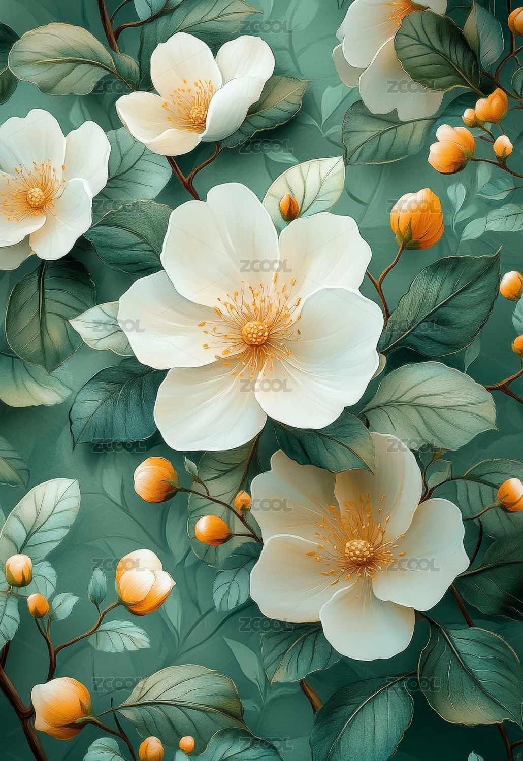 码复古牡丹和花蕾纹理图形海报手机端背景