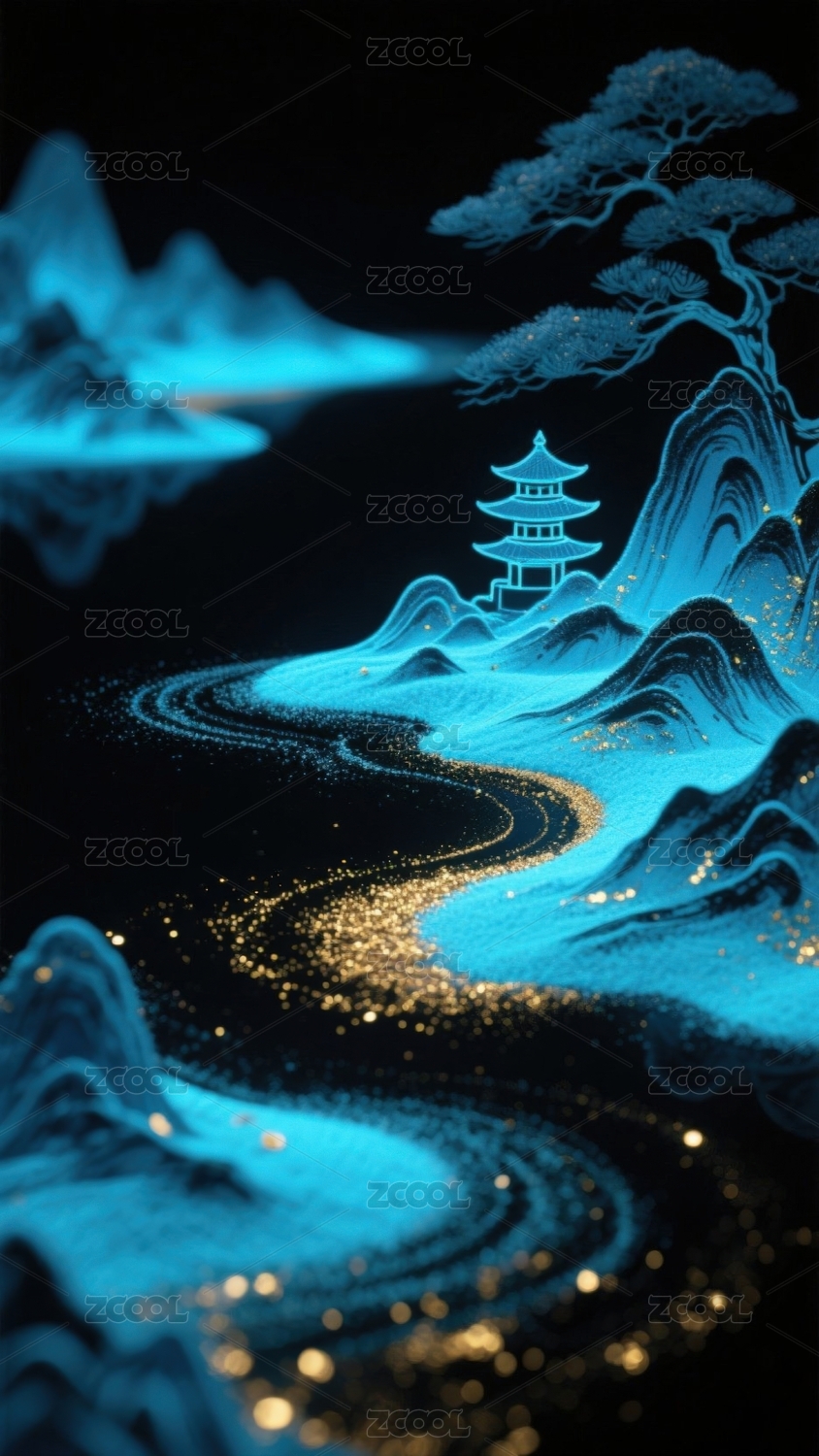 艺术,设计,树木,自然,图案,背景,黑色,光点,发光,抽象