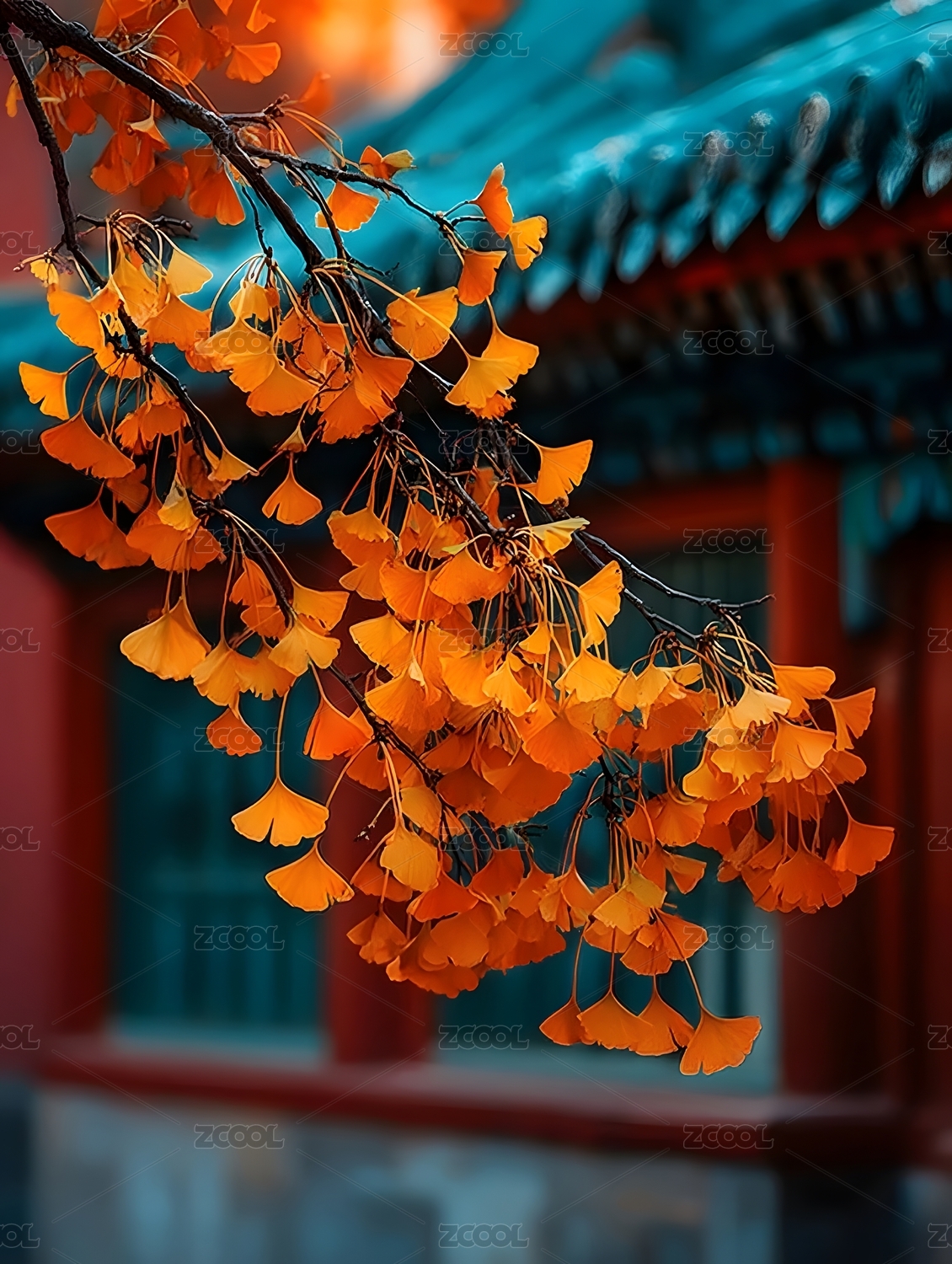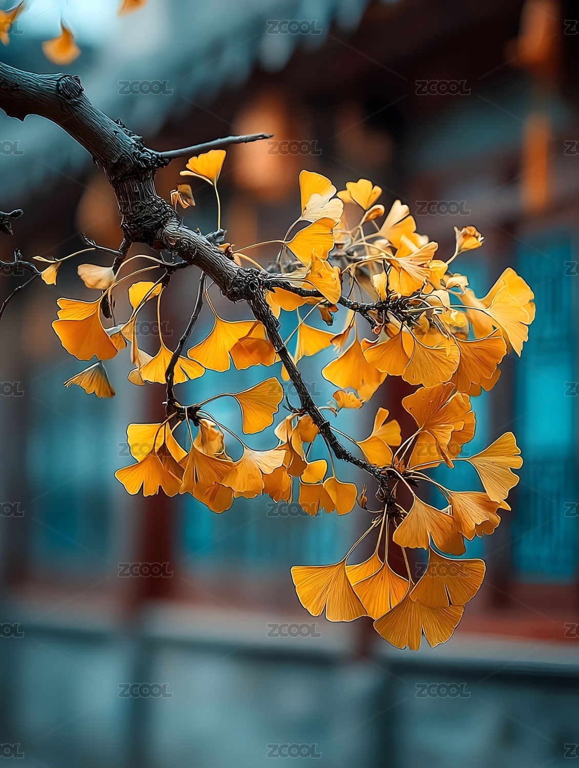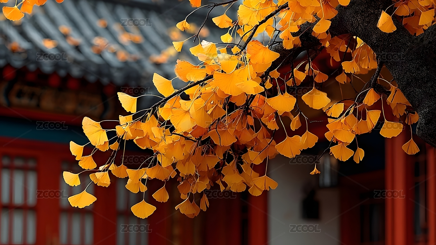 山西太原迎泽公园晋商博物馆内的金色银杏树