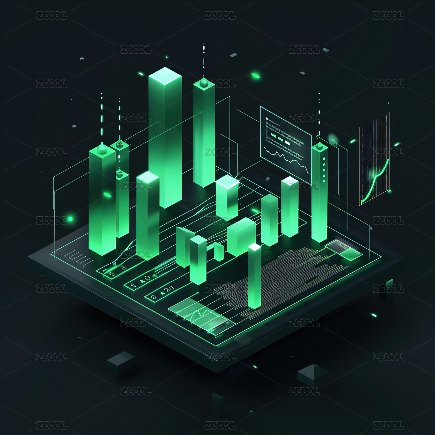 充满未来科技感的立体数据分析图表