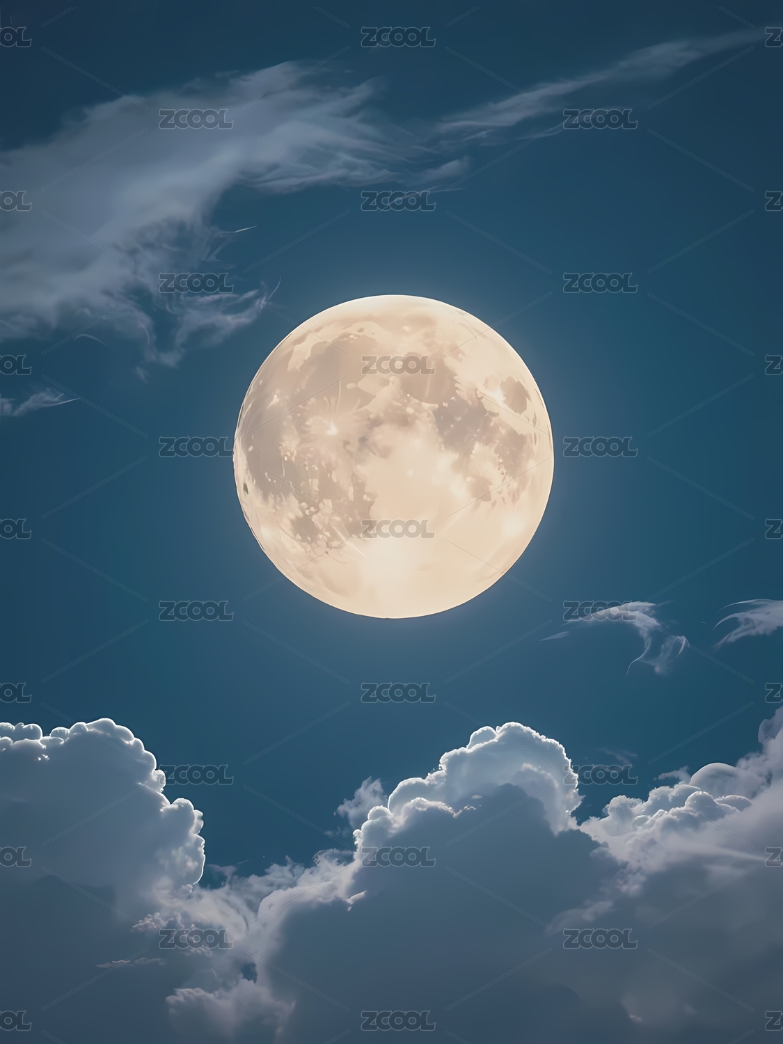自然,满月,夜空,云层,明亮,天空,宁静,宇宙,景象,梦幻