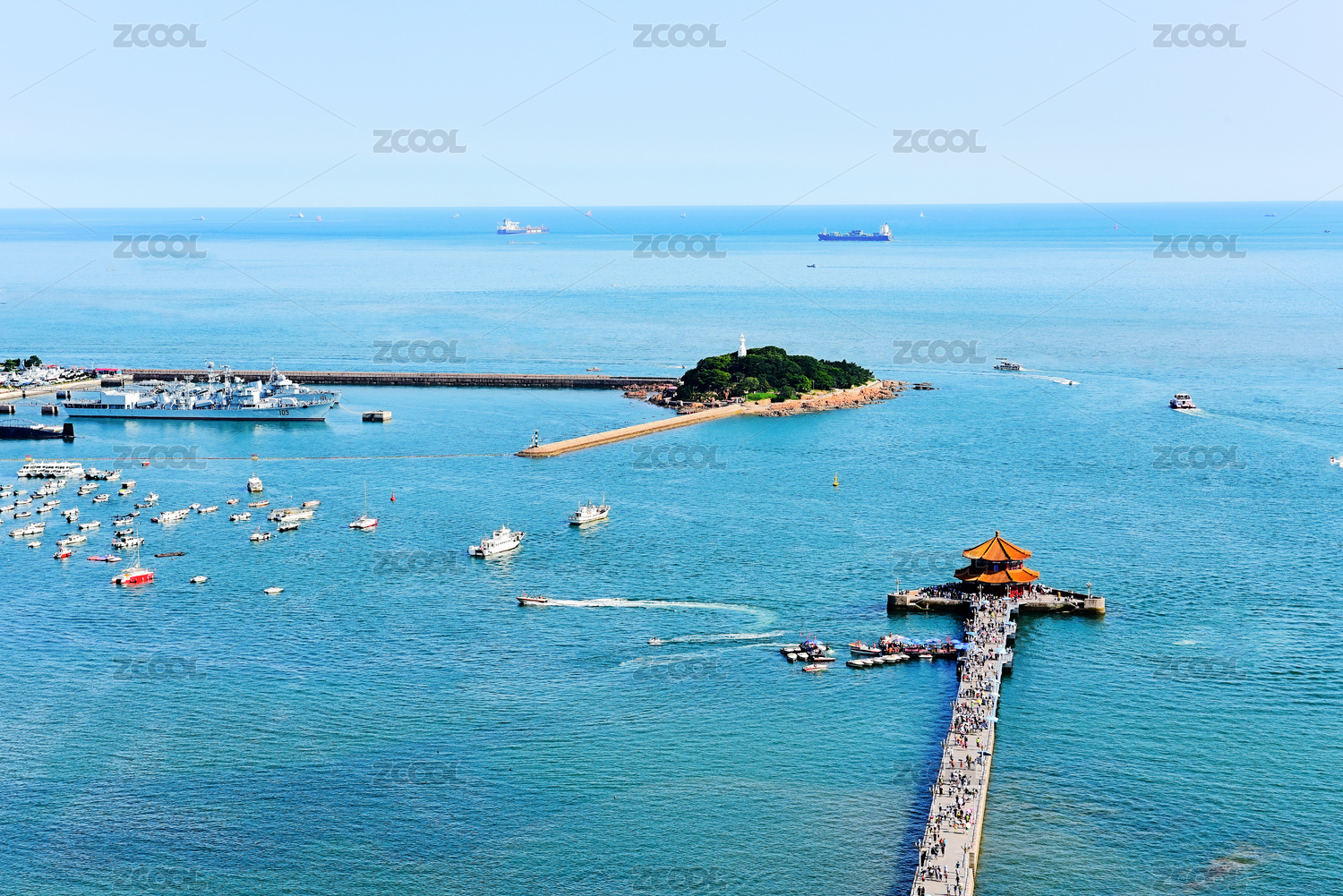 山东省青岛市地标性建筑栈桥城市建筑风光
