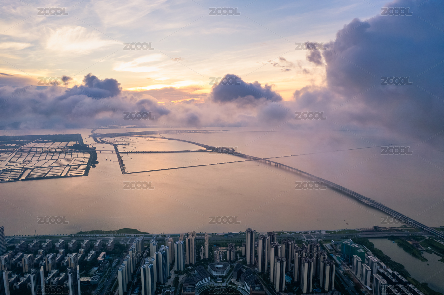 福建宁德霞浦县城日落晚霞城市建筑山水风光