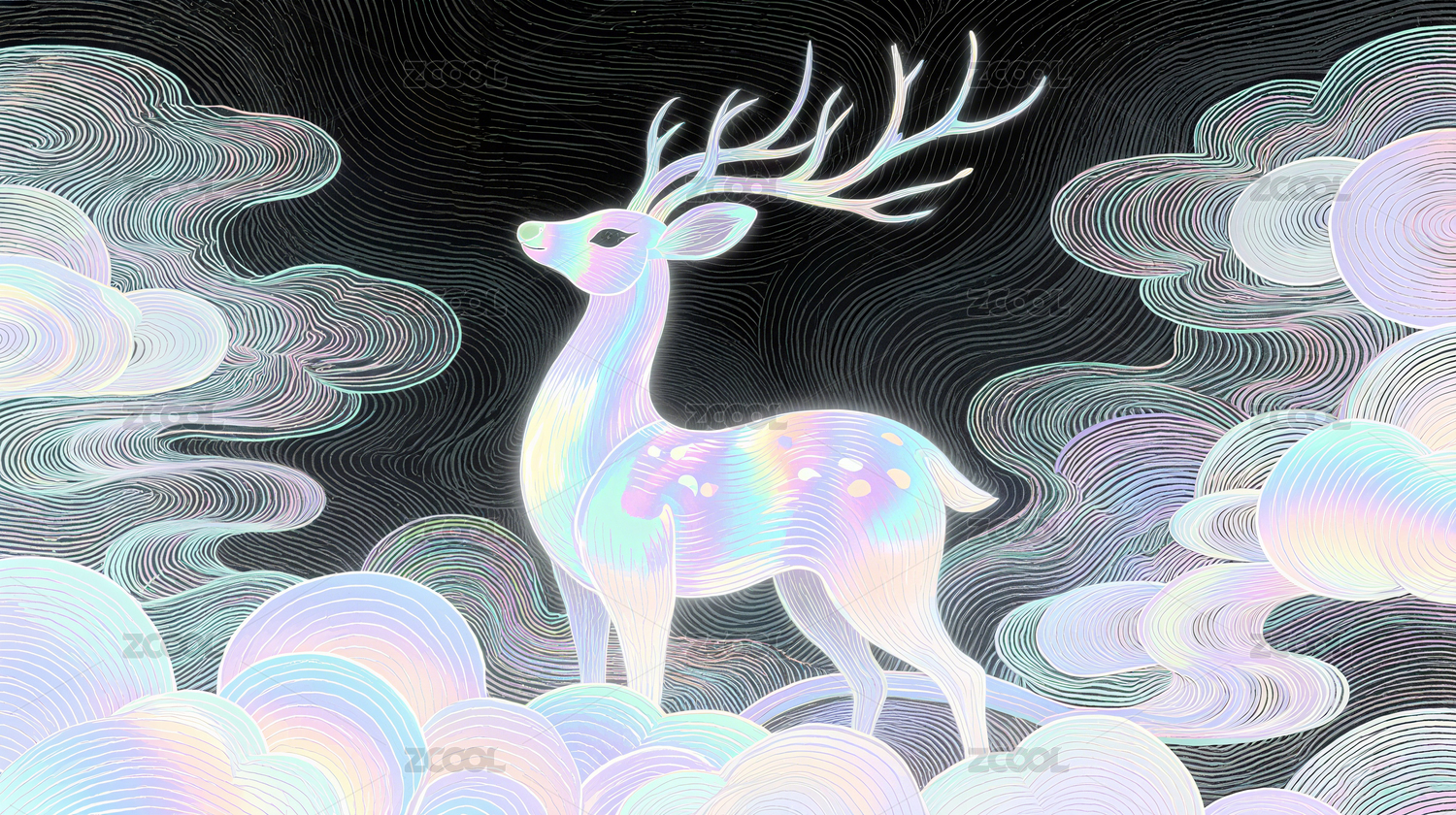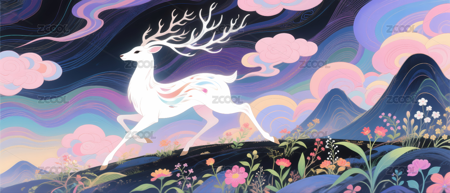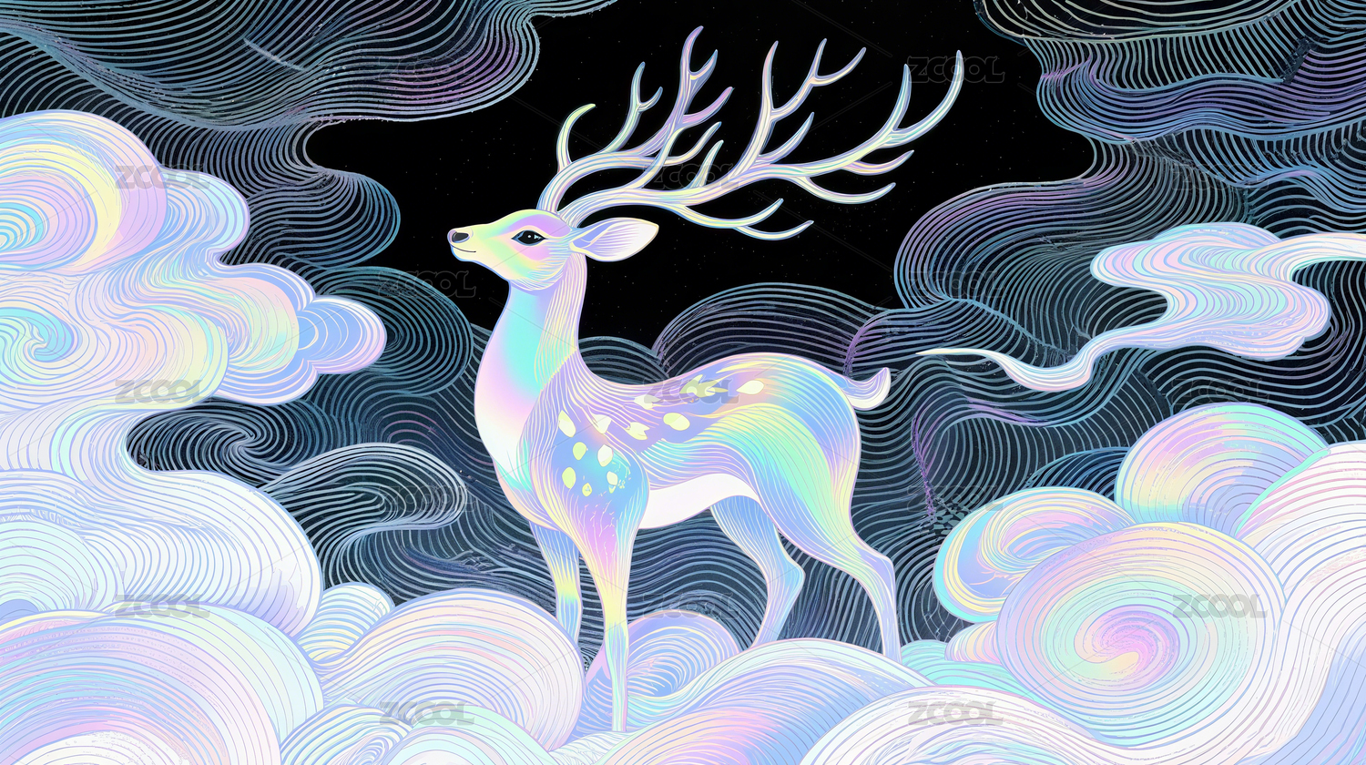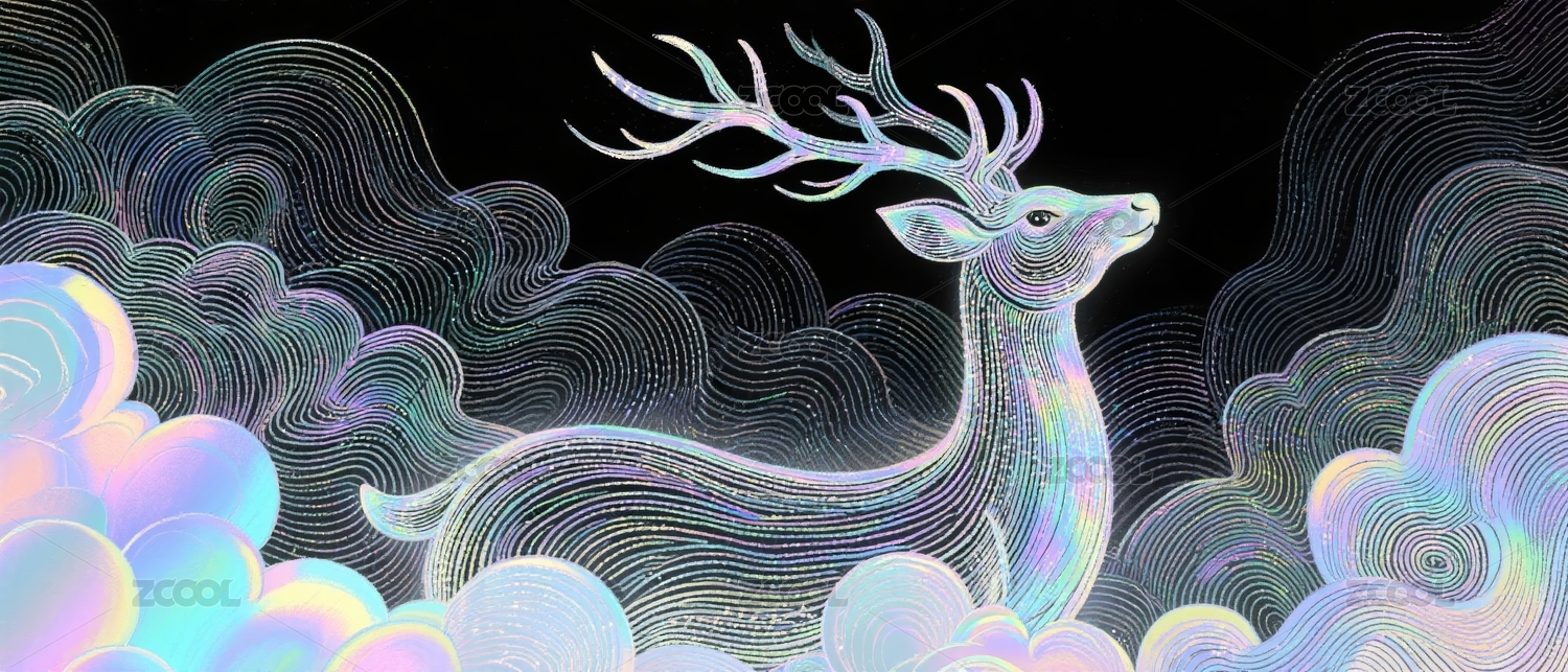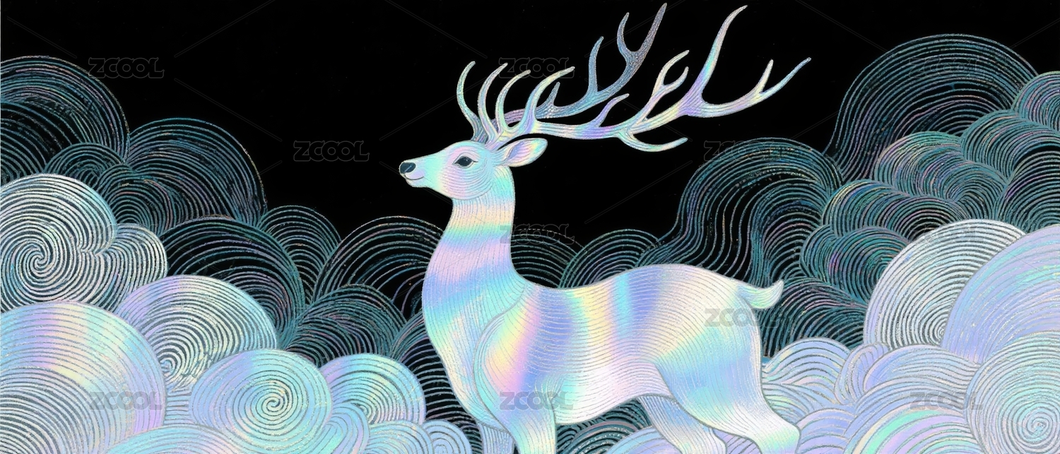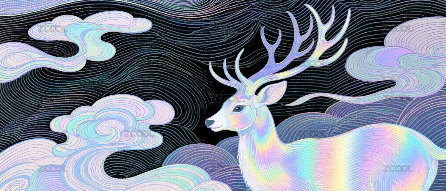 梦幻线描云鹿艺术背景
