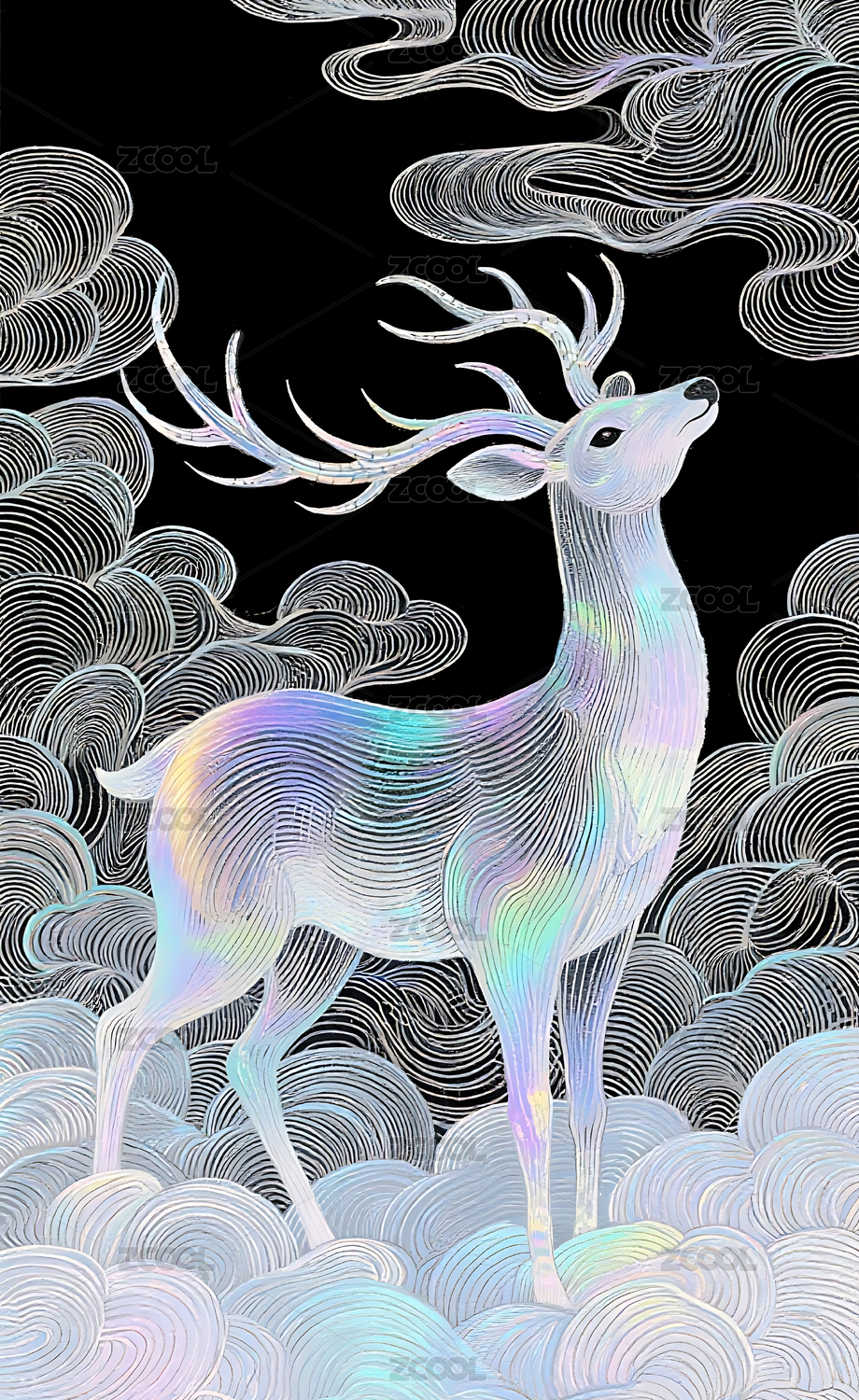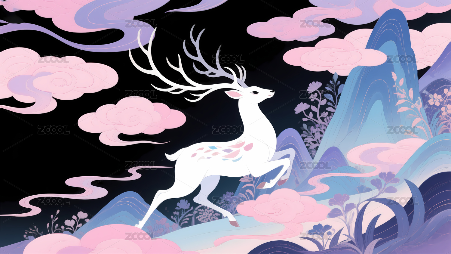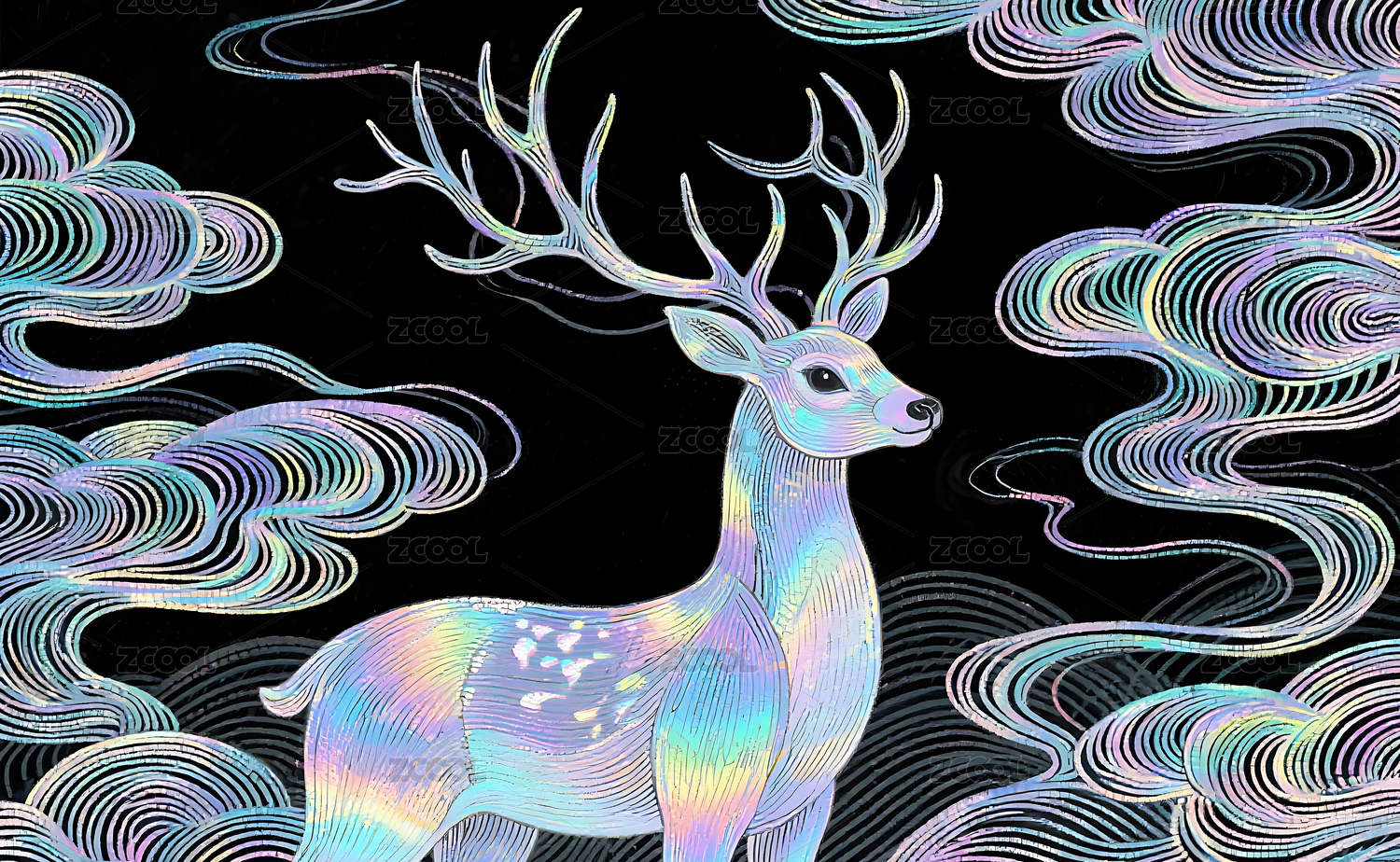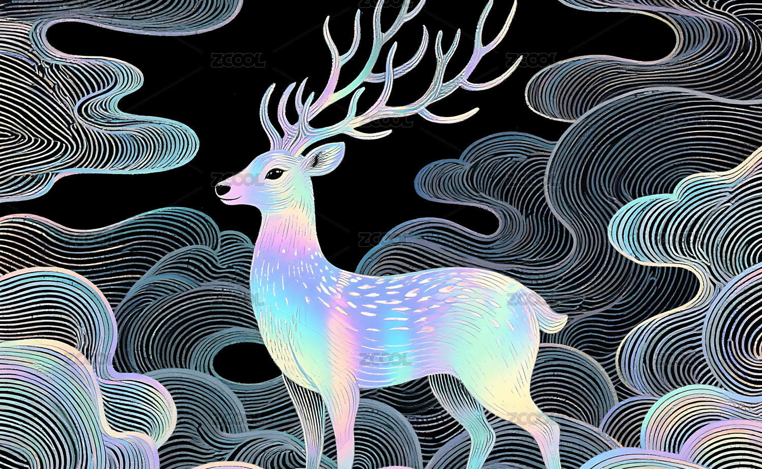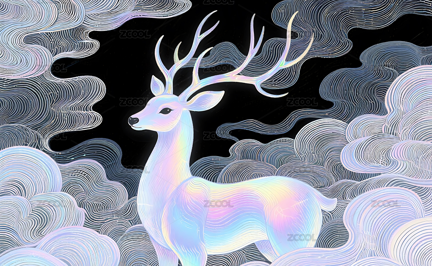 梦幻线描云鹿艺术背景