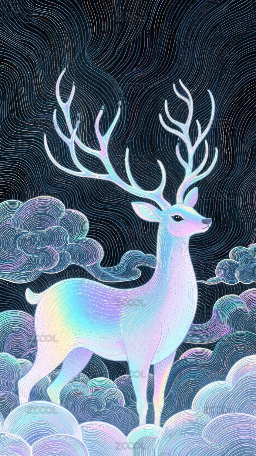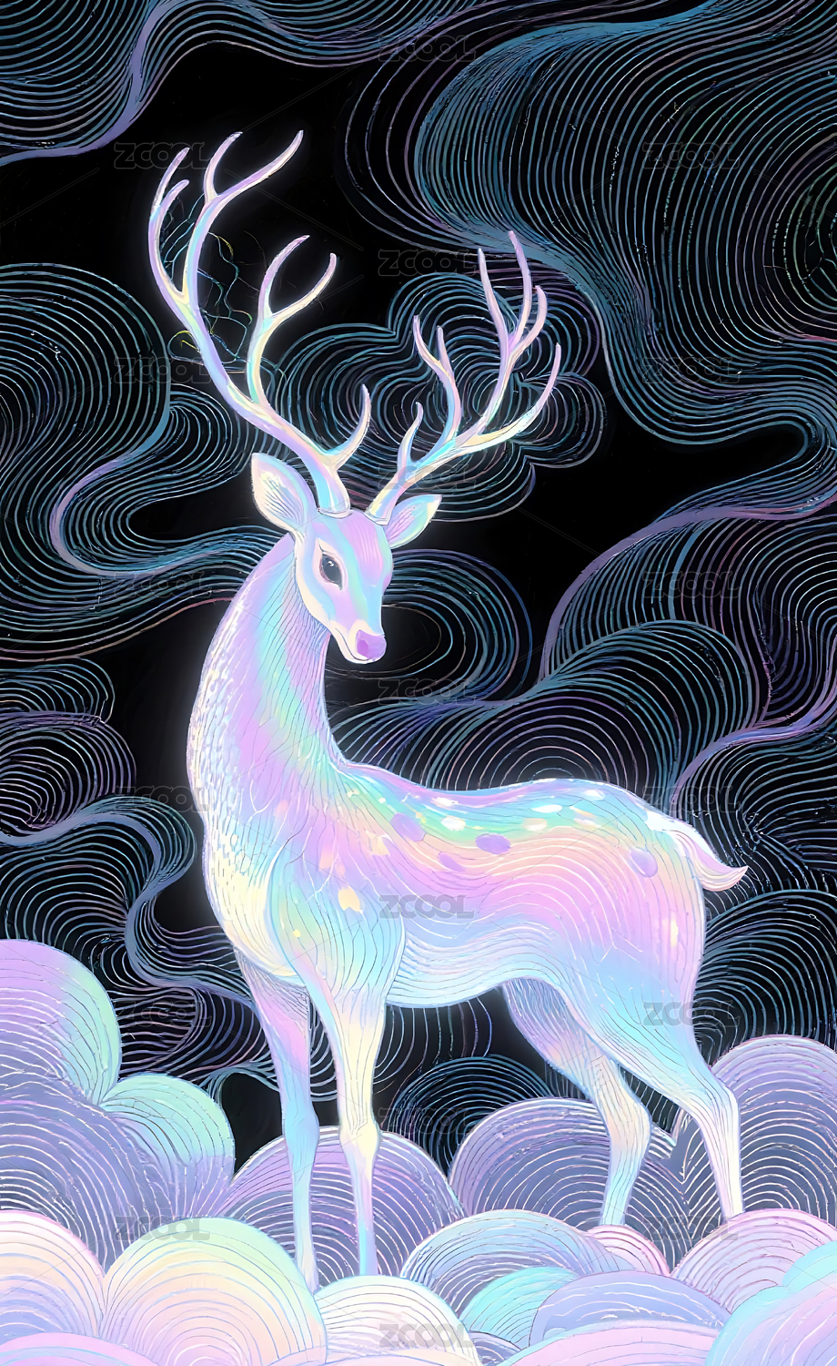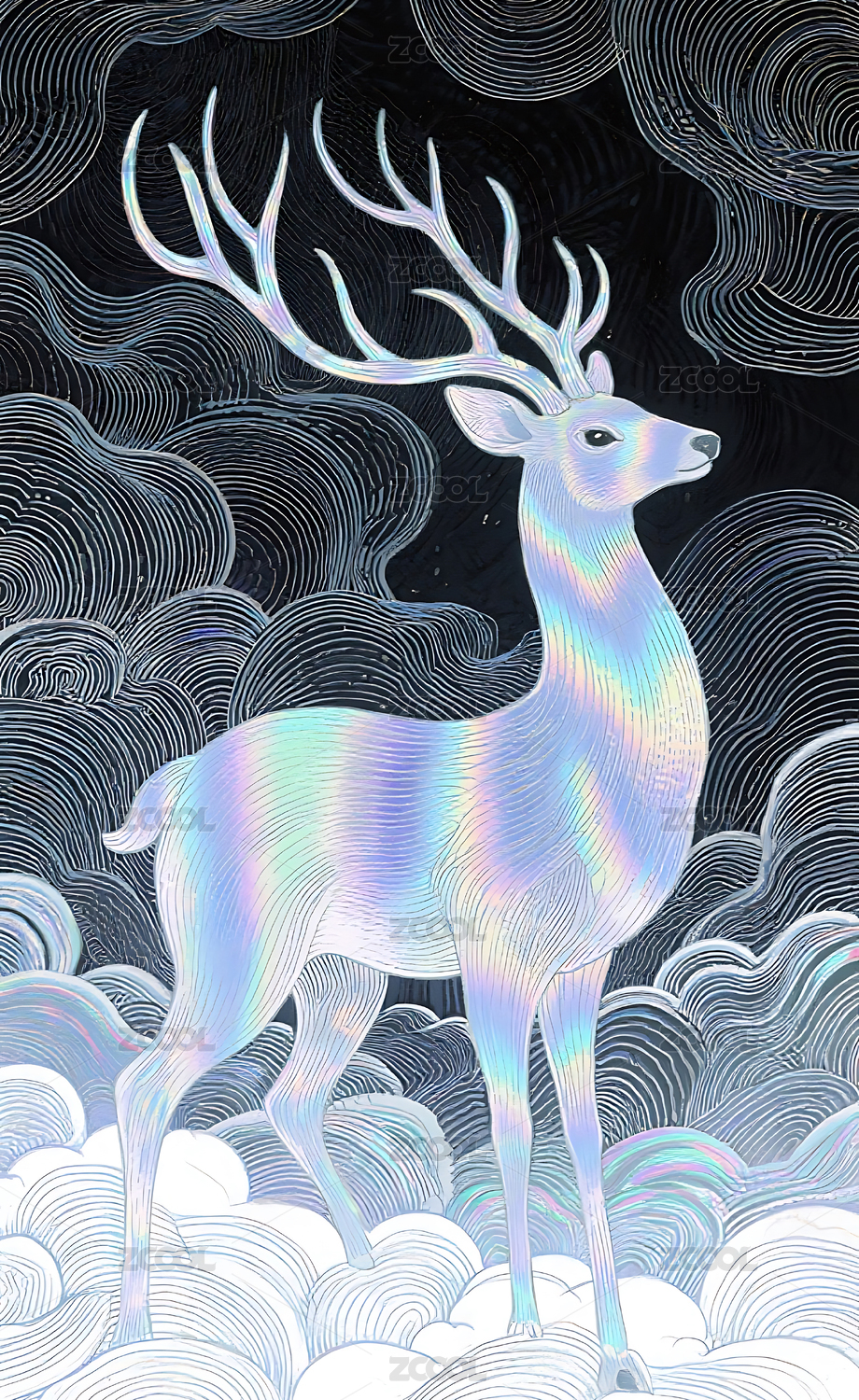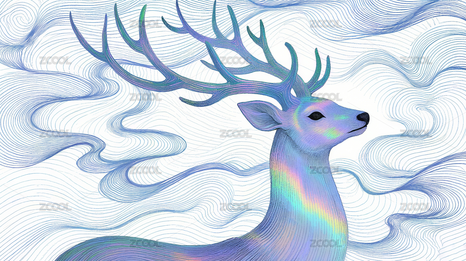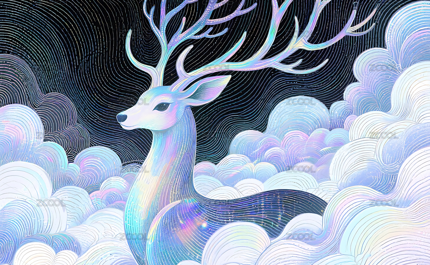 梦幻线描云鹿艺术背景