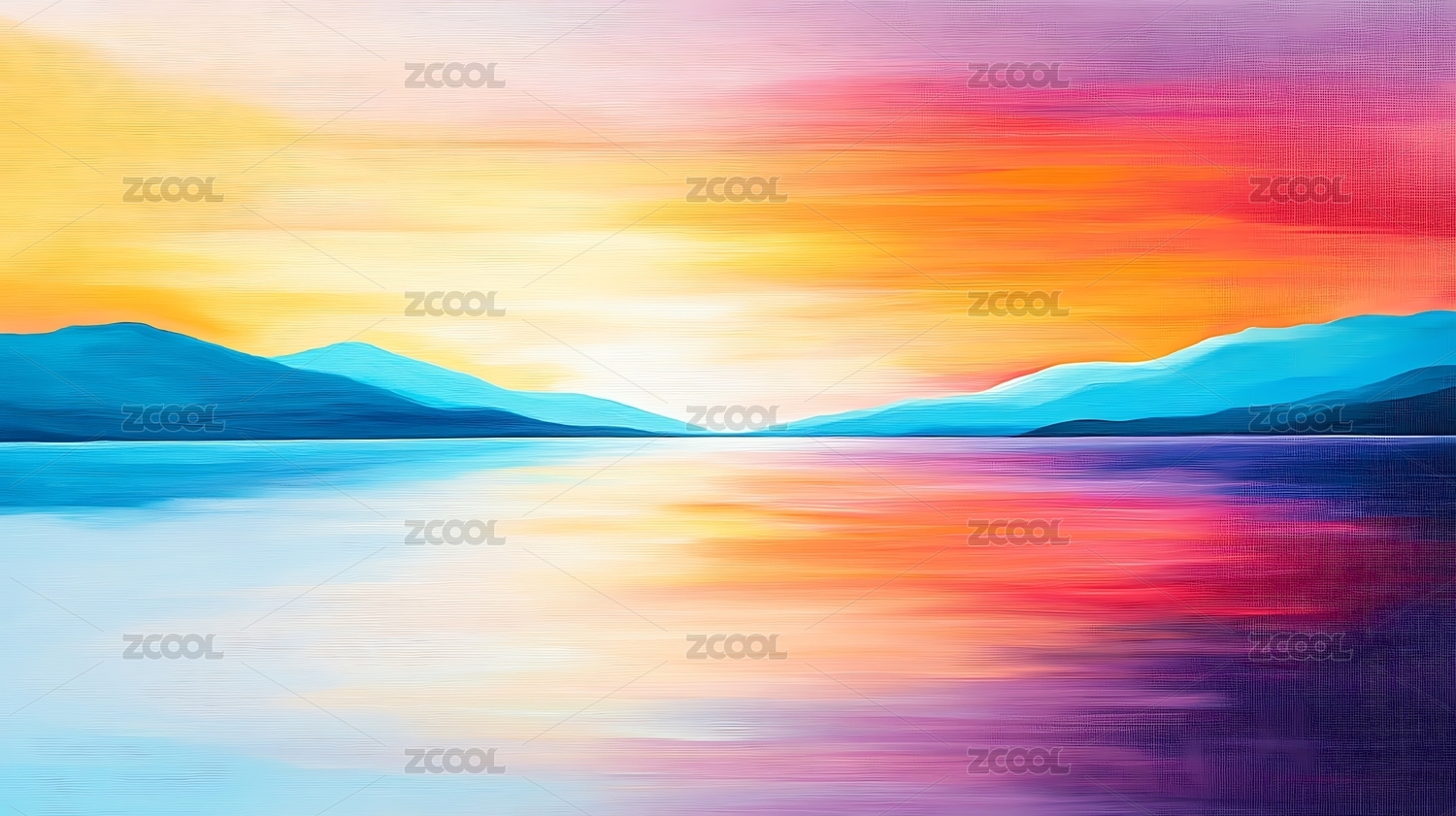 景色,风景,树木,倒影,湖泊,宁静,美景,山脉,油画,夕阳