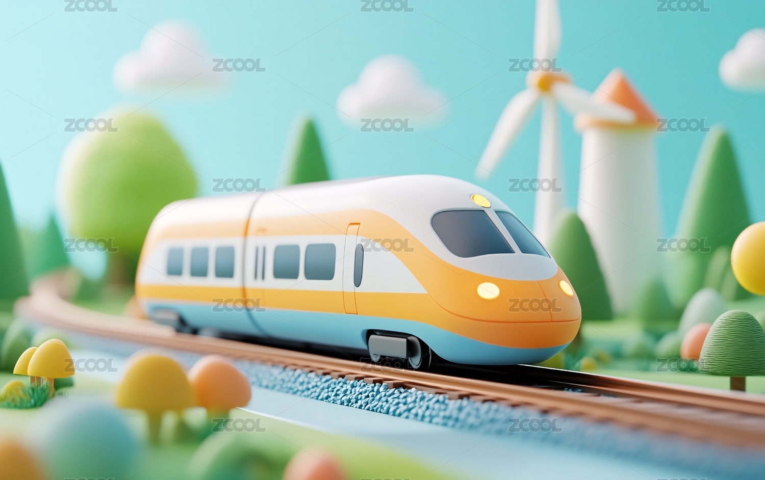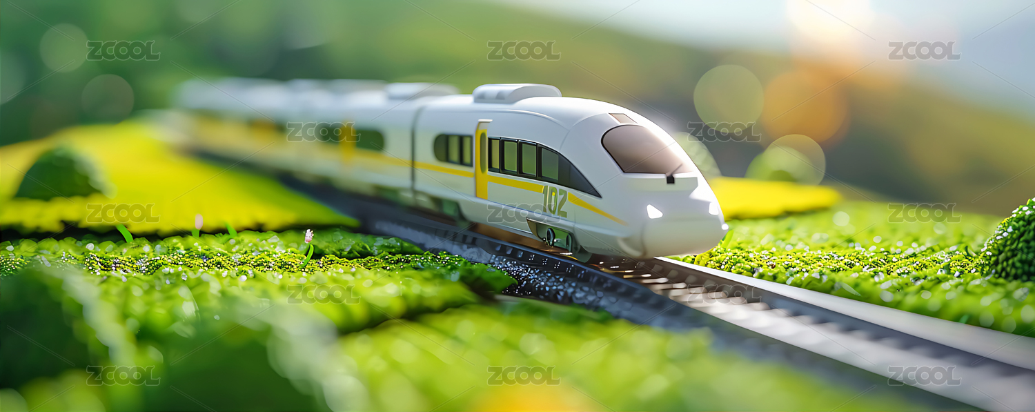 卡通风格高速列车驶过田园