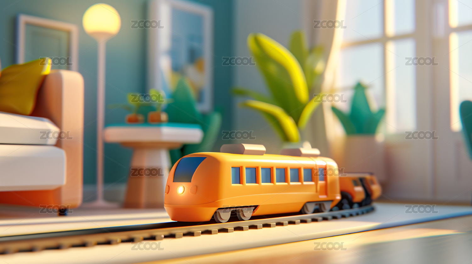 玩具场景中的小火车