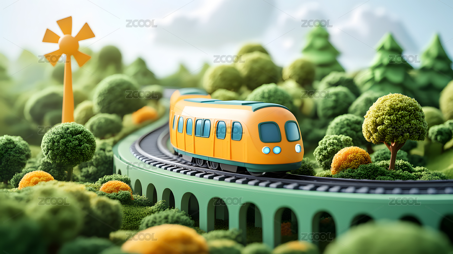 绿色森林中的玩具火车