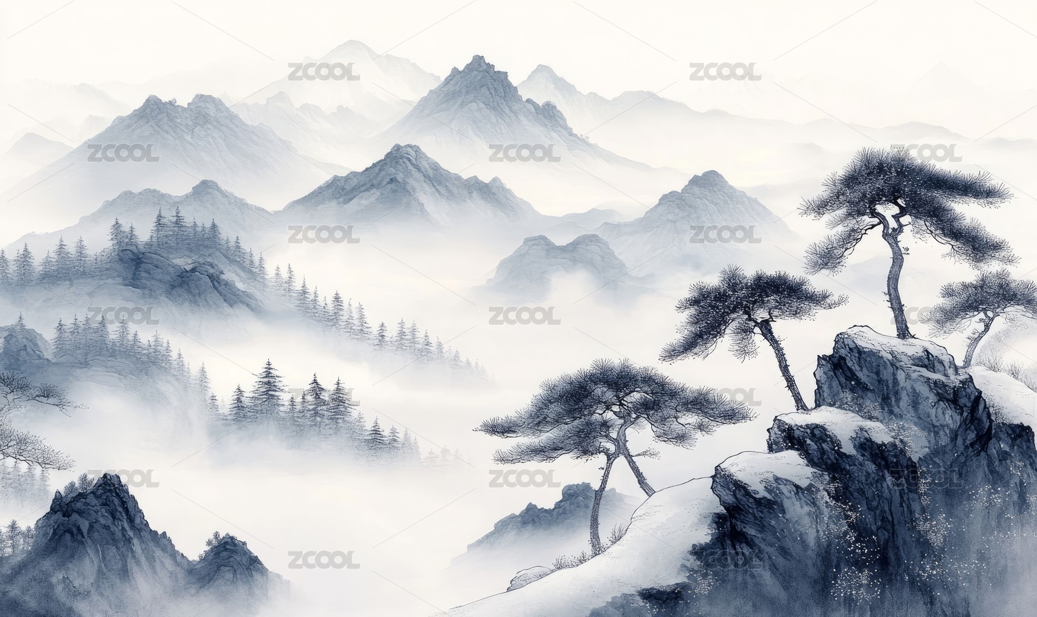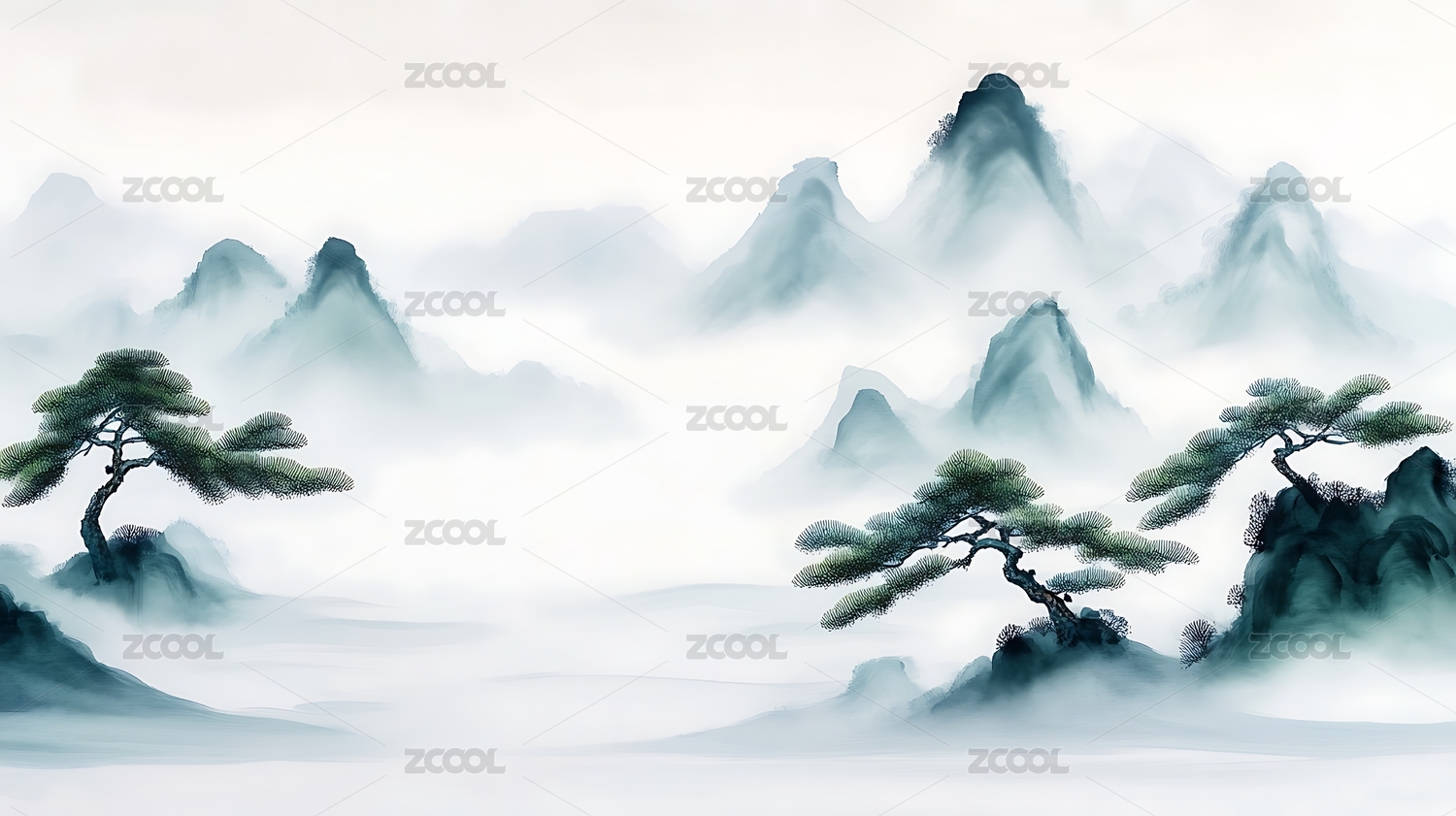 树木,风景,山水,意境,晕染,水墨,云雾,峰峦,青山