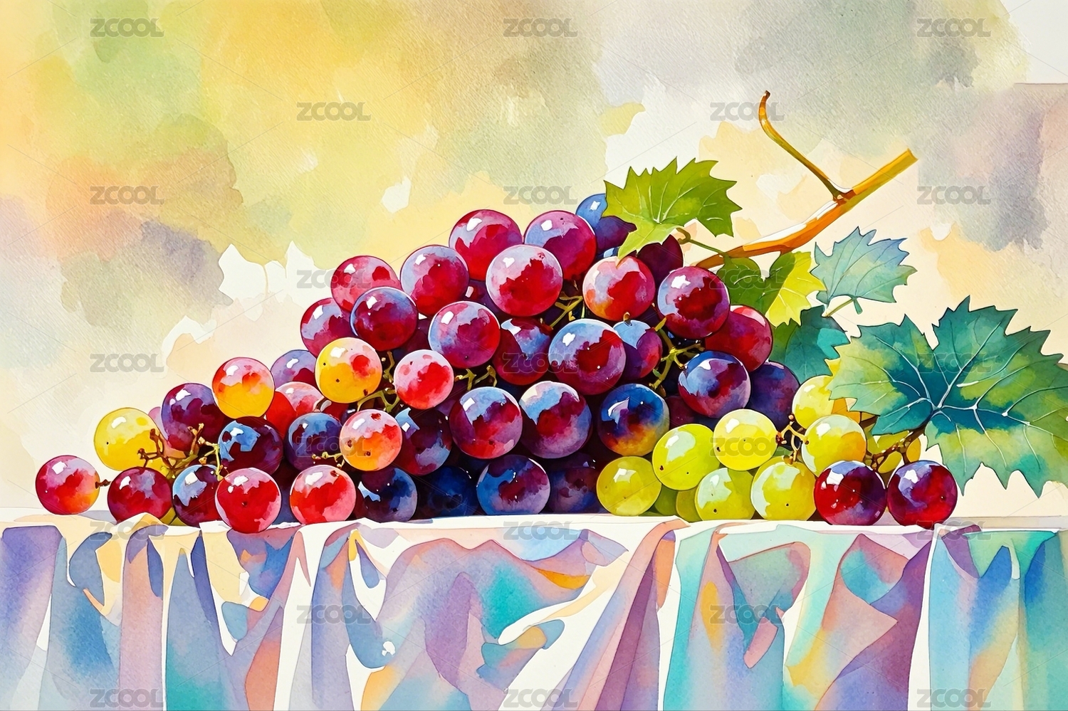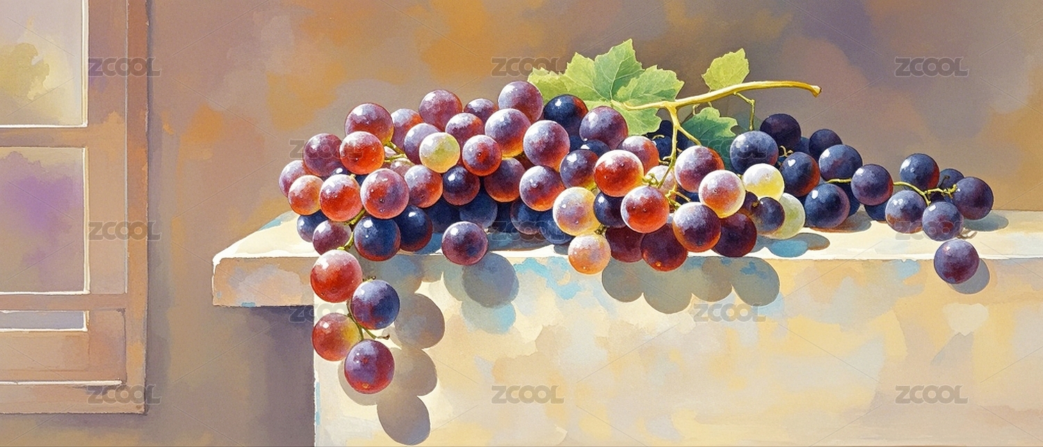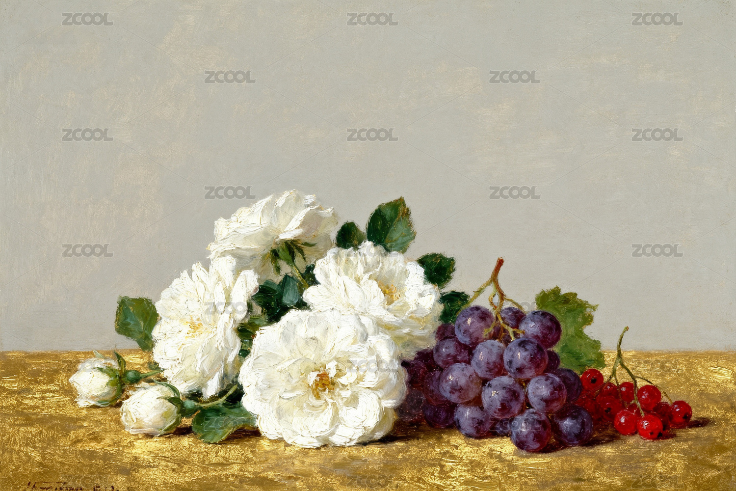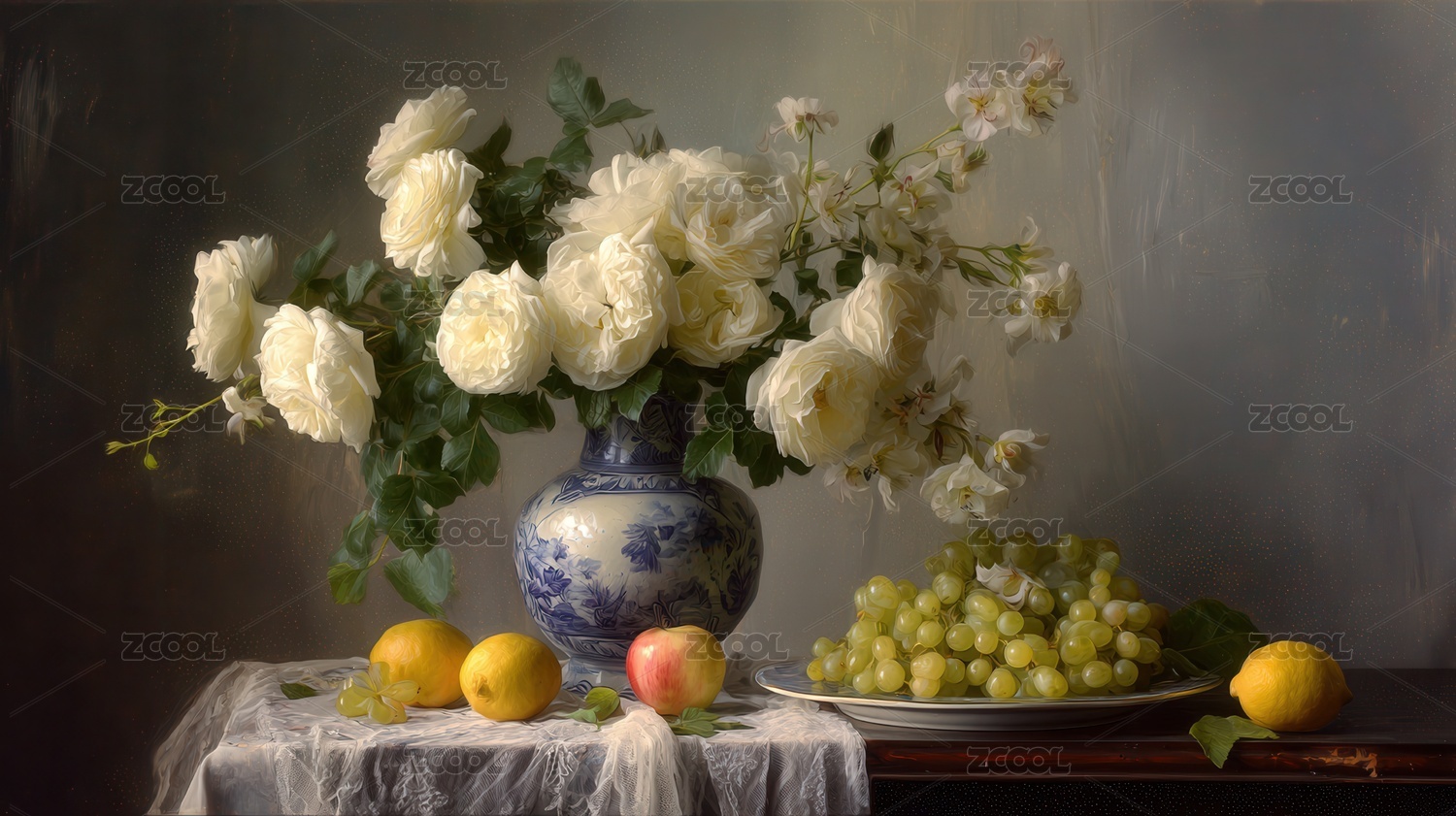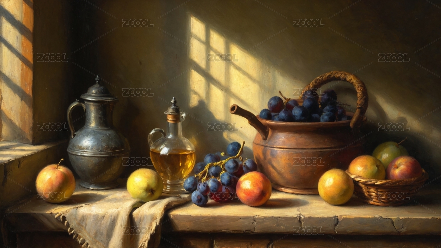 室内,果盘,葡萄,桃子,青提,李子,银盘,厚涂,油画,艺术