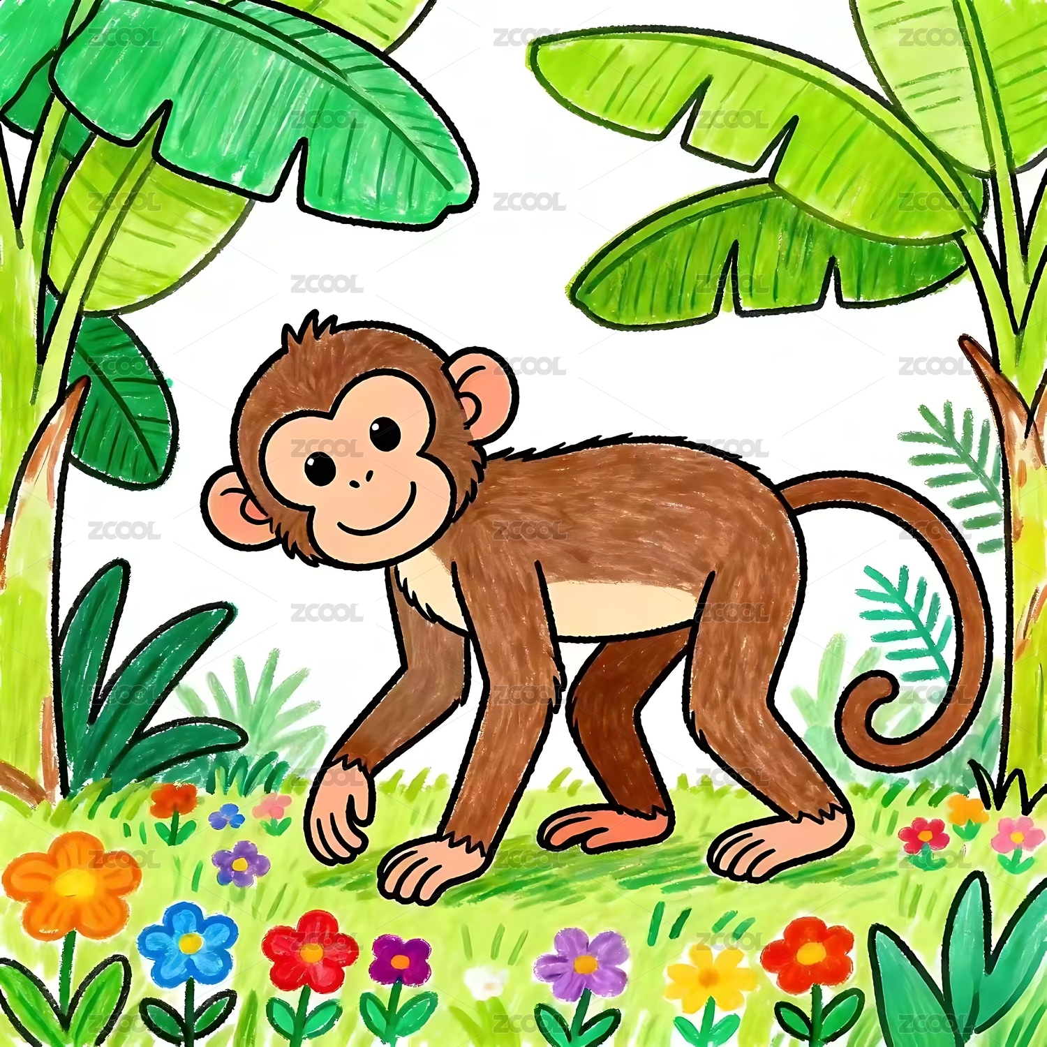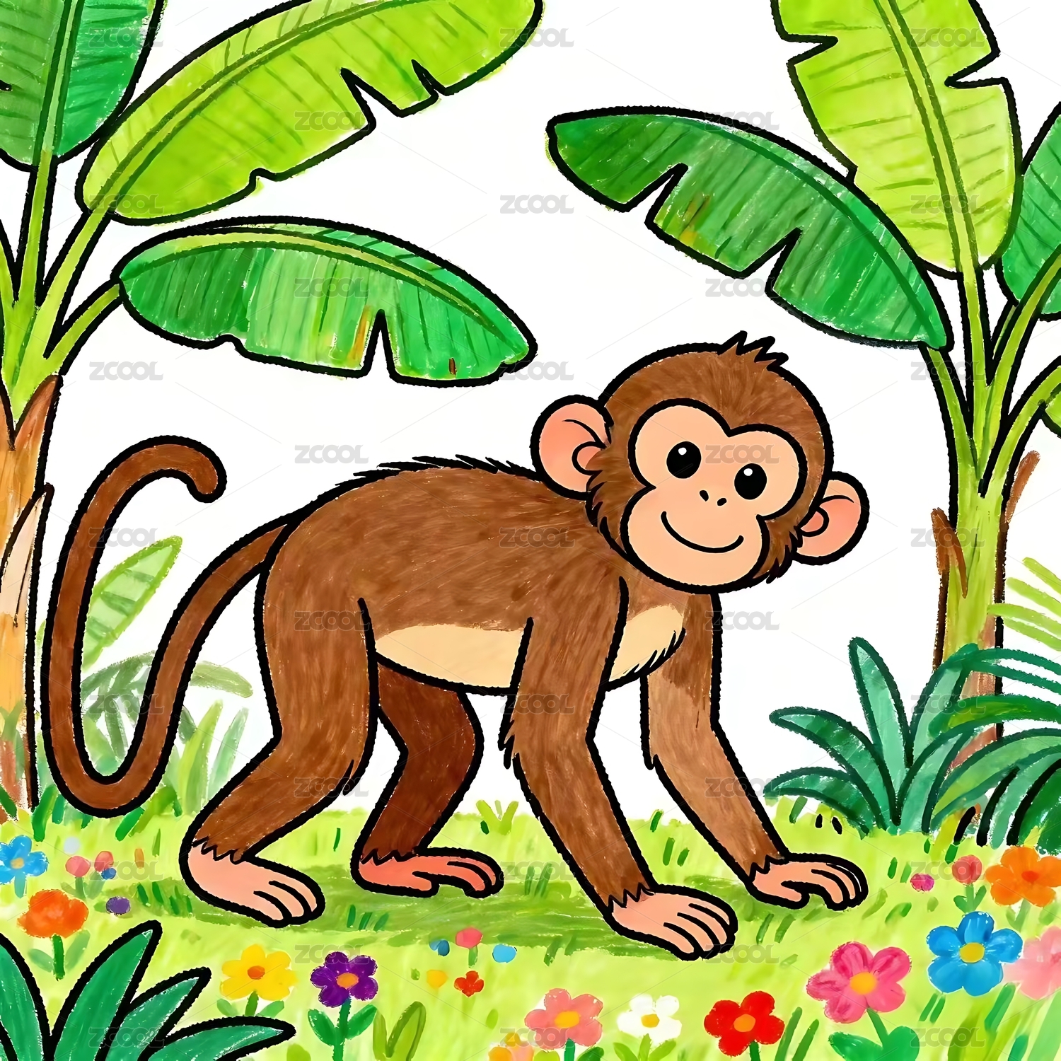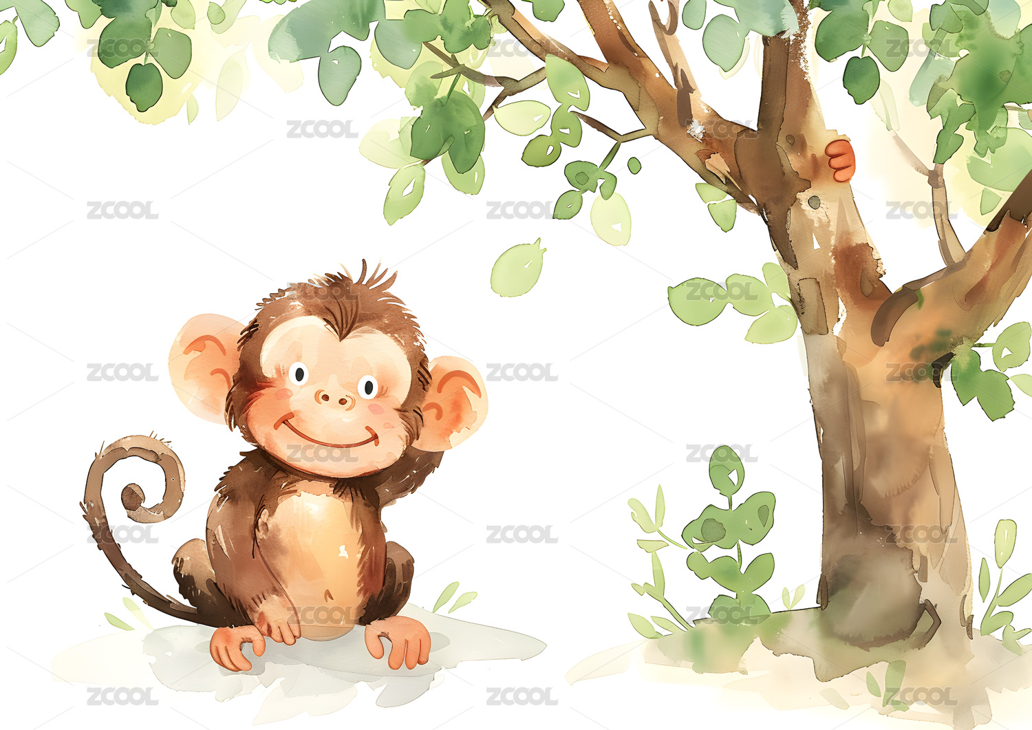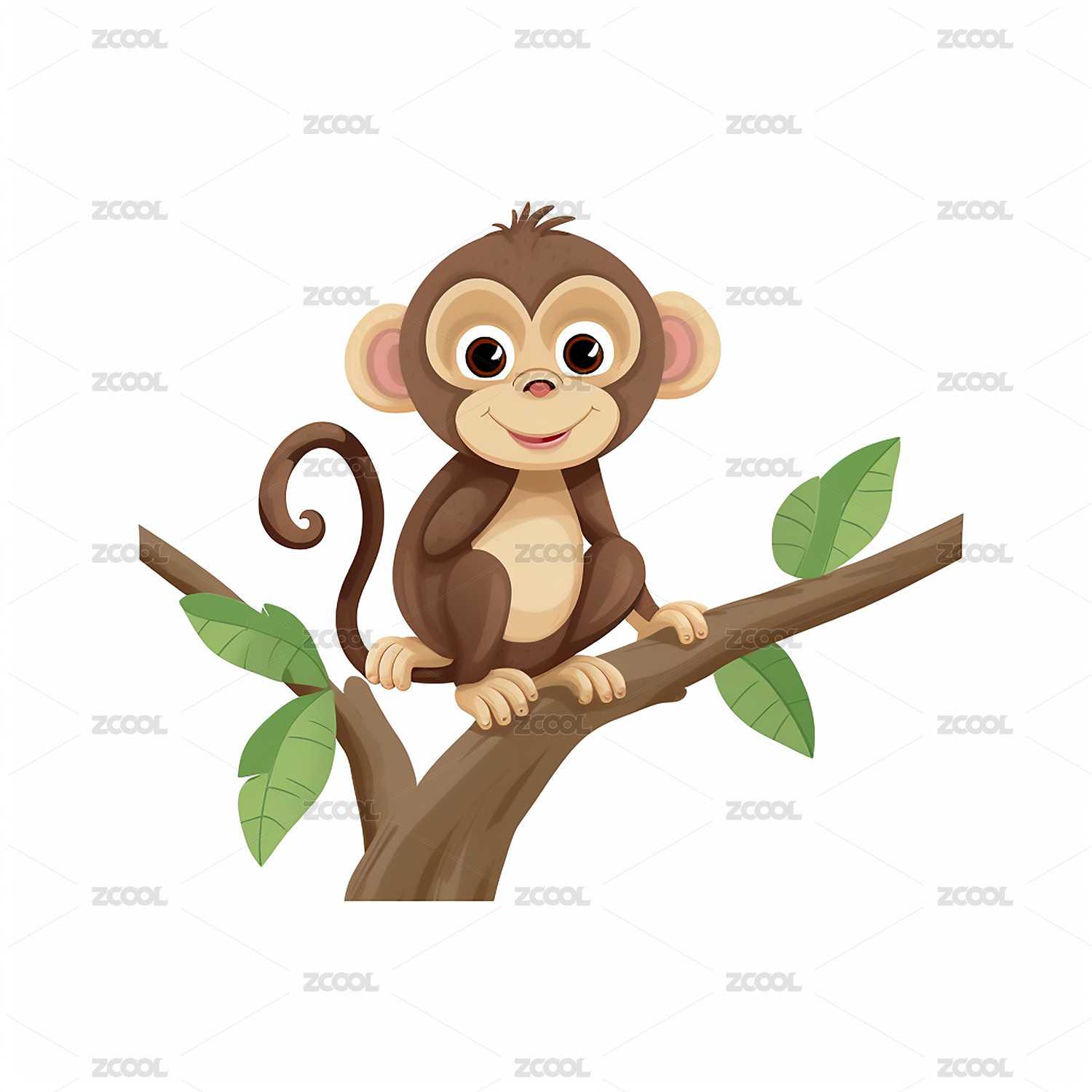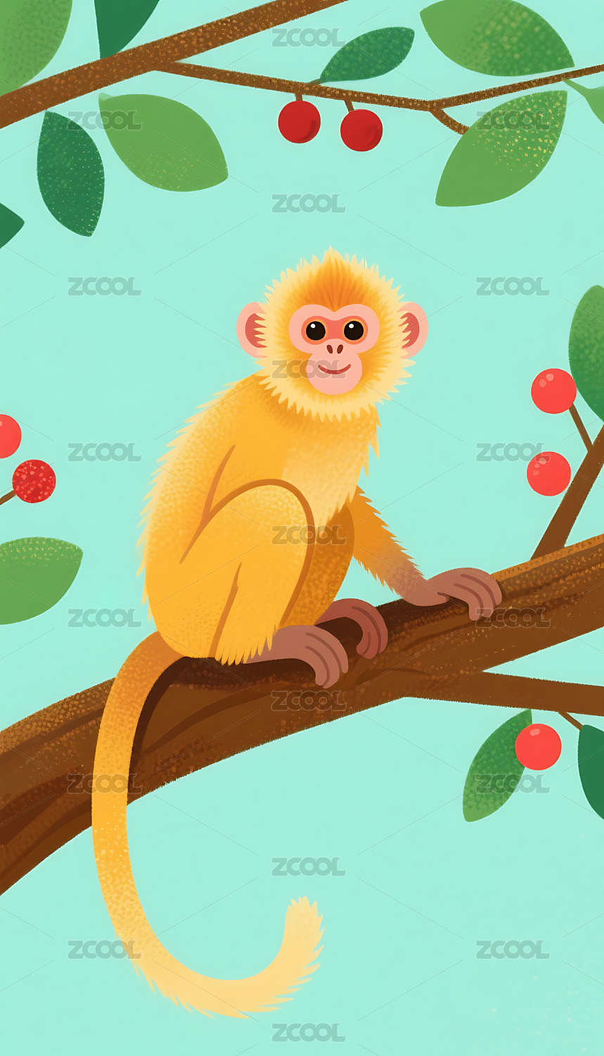 猴子,树叶,卡通,攀爬,插画,模板,动物,森林,树枝,卡通风格