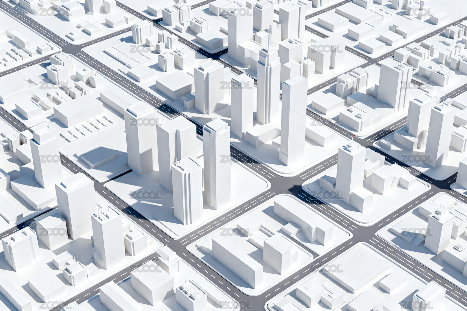 高耸现代城市绿色建筑晶体模型3D卡通插画