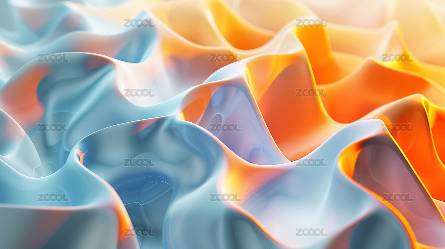 蓝橙色波浪形抽象图案