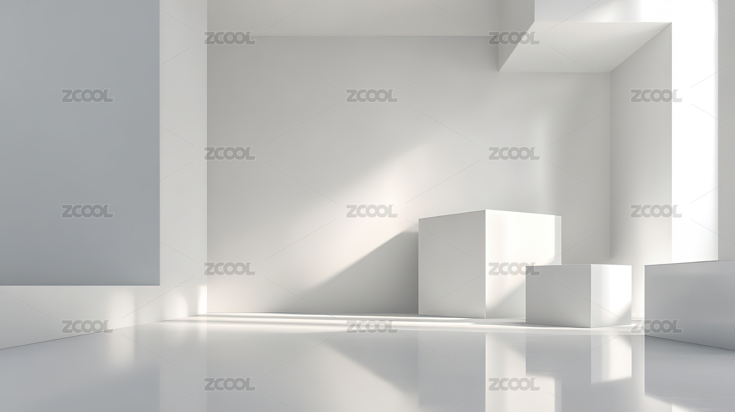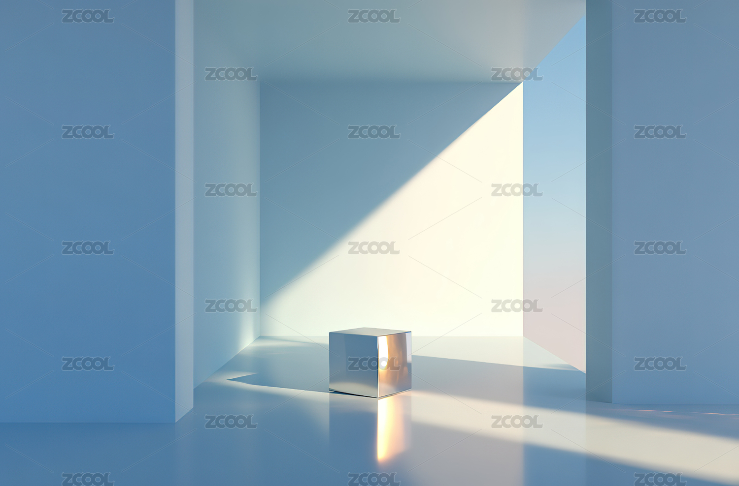 现代,艺术,设计,简洁,明亮,反射,光线,几何,立方体,空间