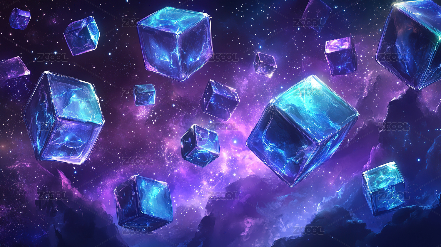 星空,水晶,方块,科幻,场景,未来,梦幻,艺术,设计,素材