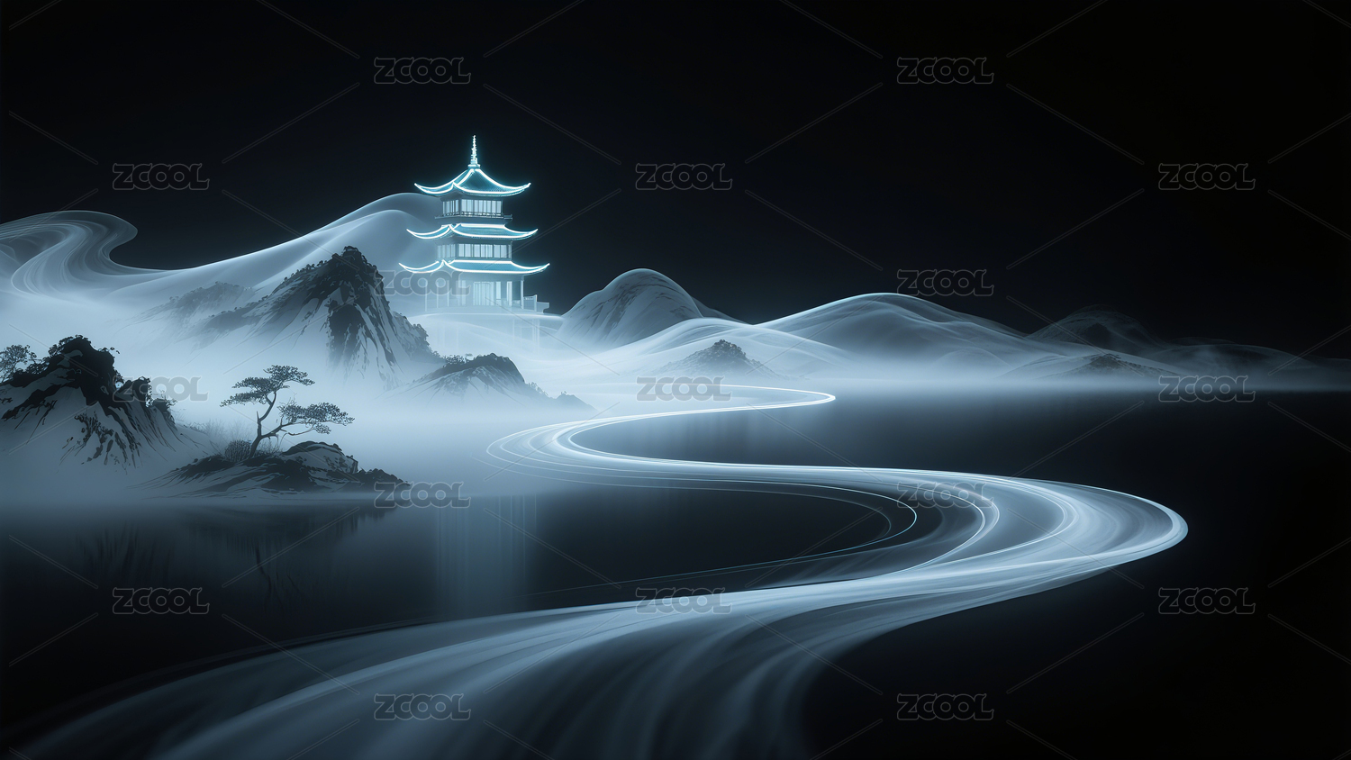 自然,风景,曲线,环境,艺术,夜晚,传统,意境,东方,建筑