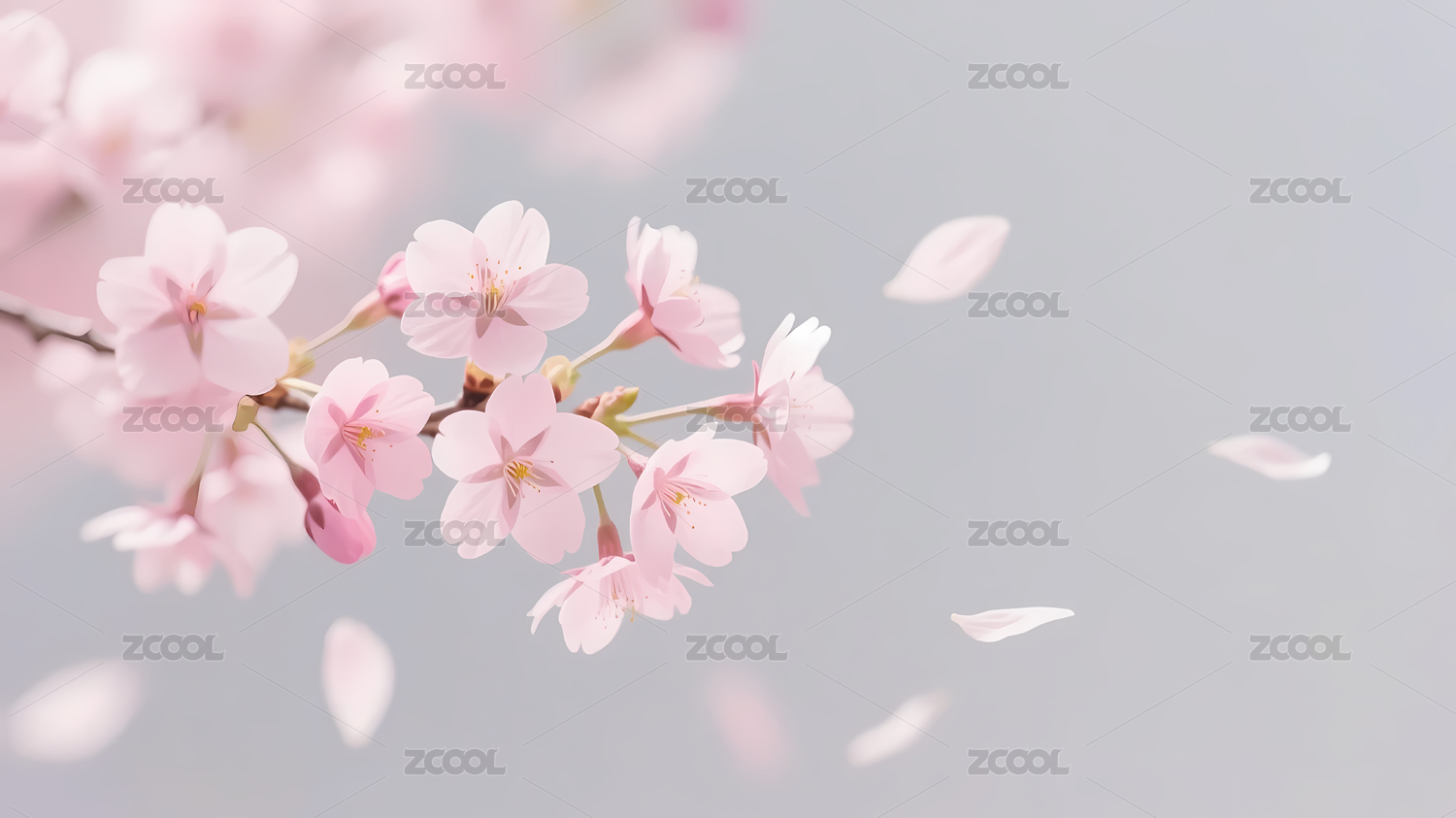 樱花,花枝,花瓣,飘落,粉色,背景,插画,唯美,自然,浪漫