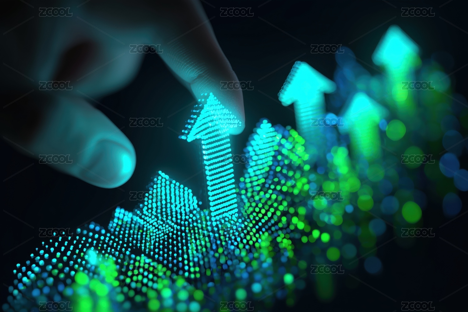 手指绿色电子金融图表营销数据3D立体背景