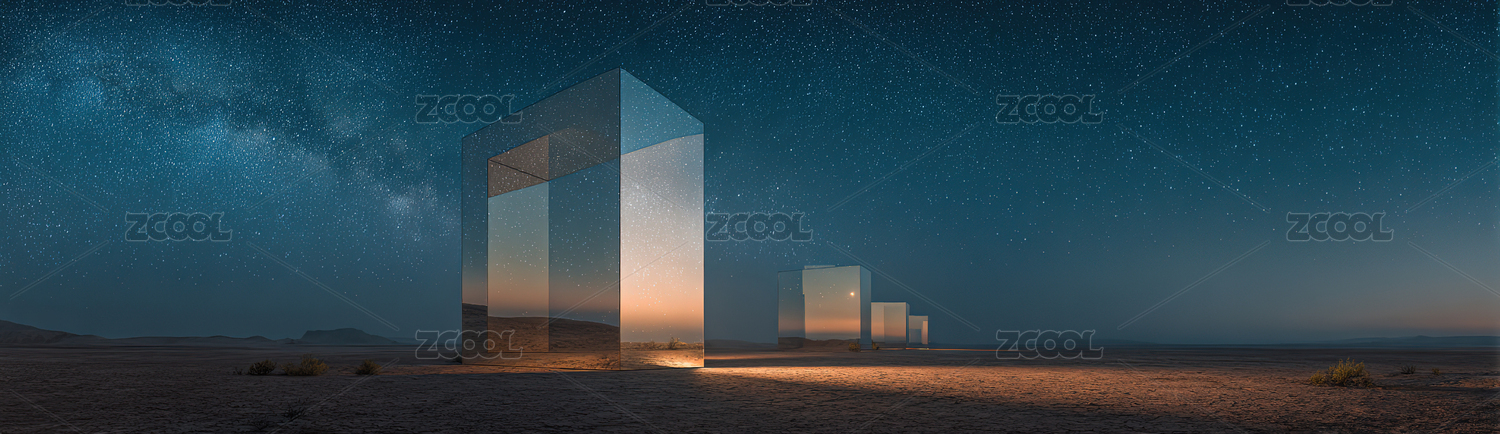 沙漠夜空下的透明立方体