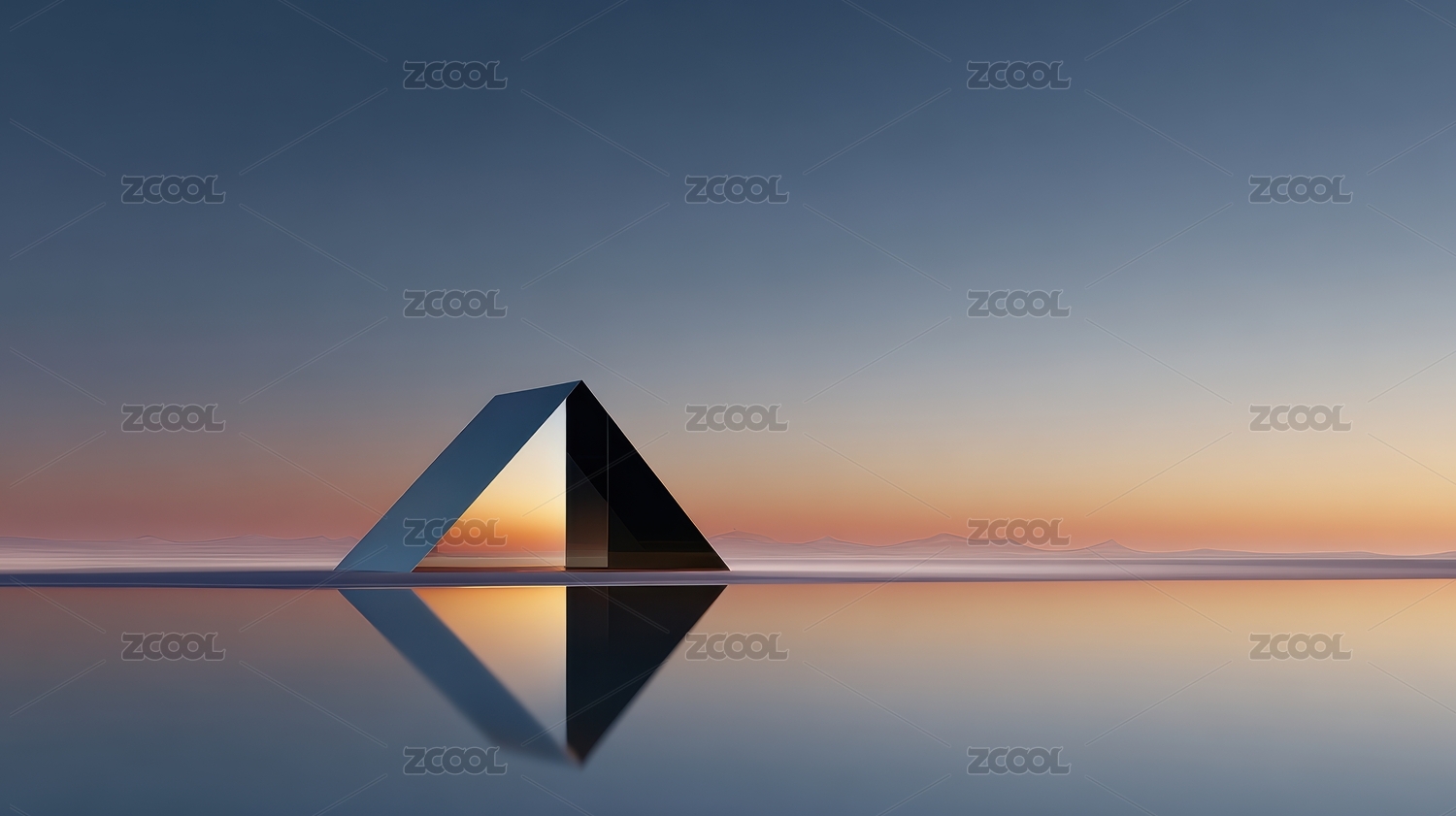 湖面上的金字塔剪影