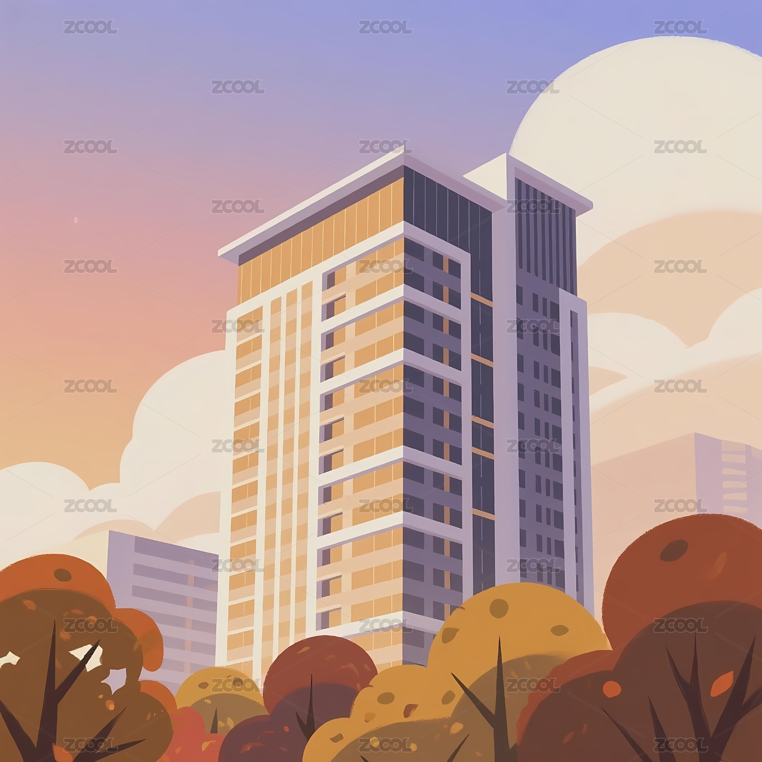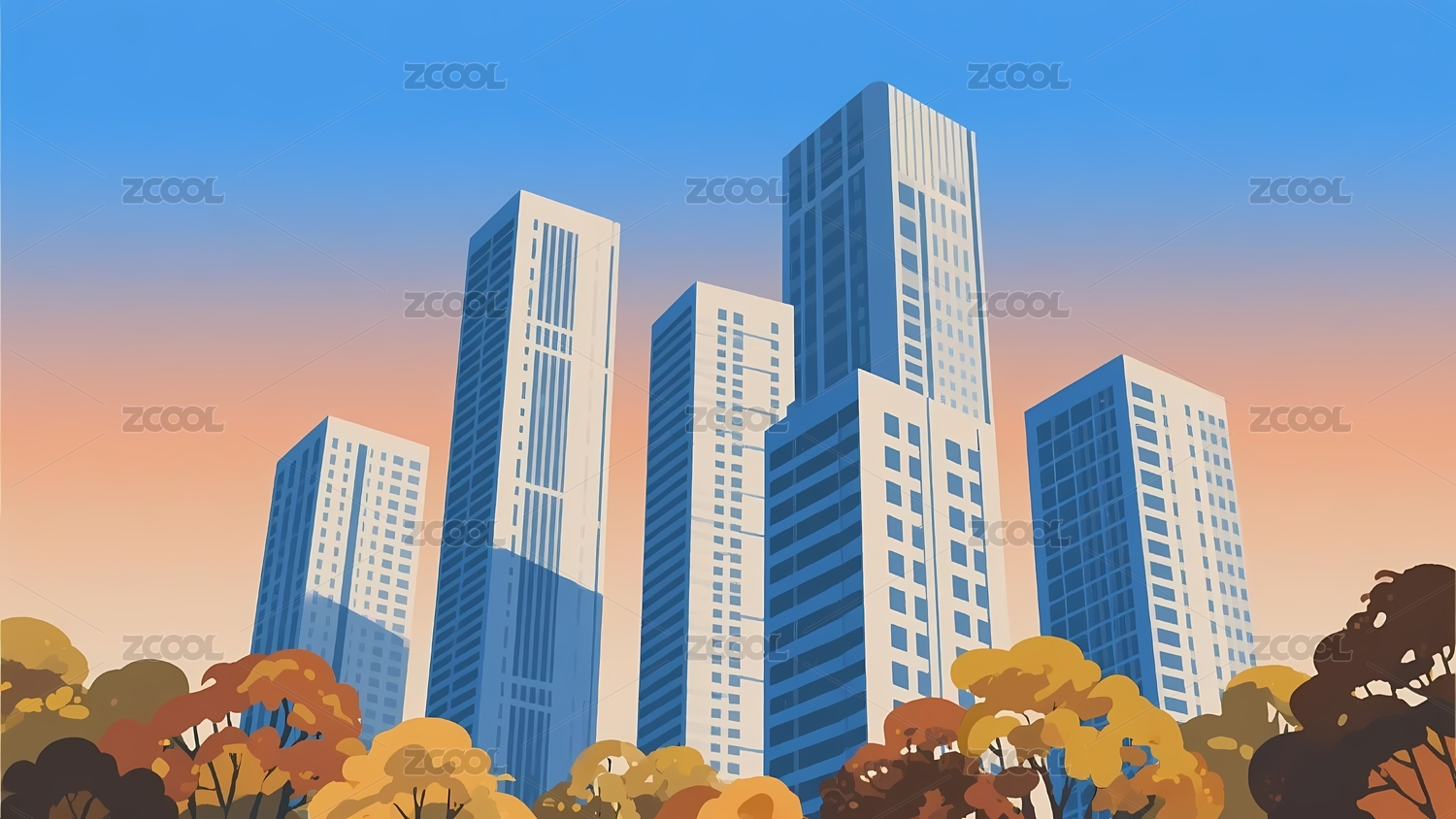 自然,高楼,建筑,秋季,树木,蓝天,城市,现代,环境,色彩