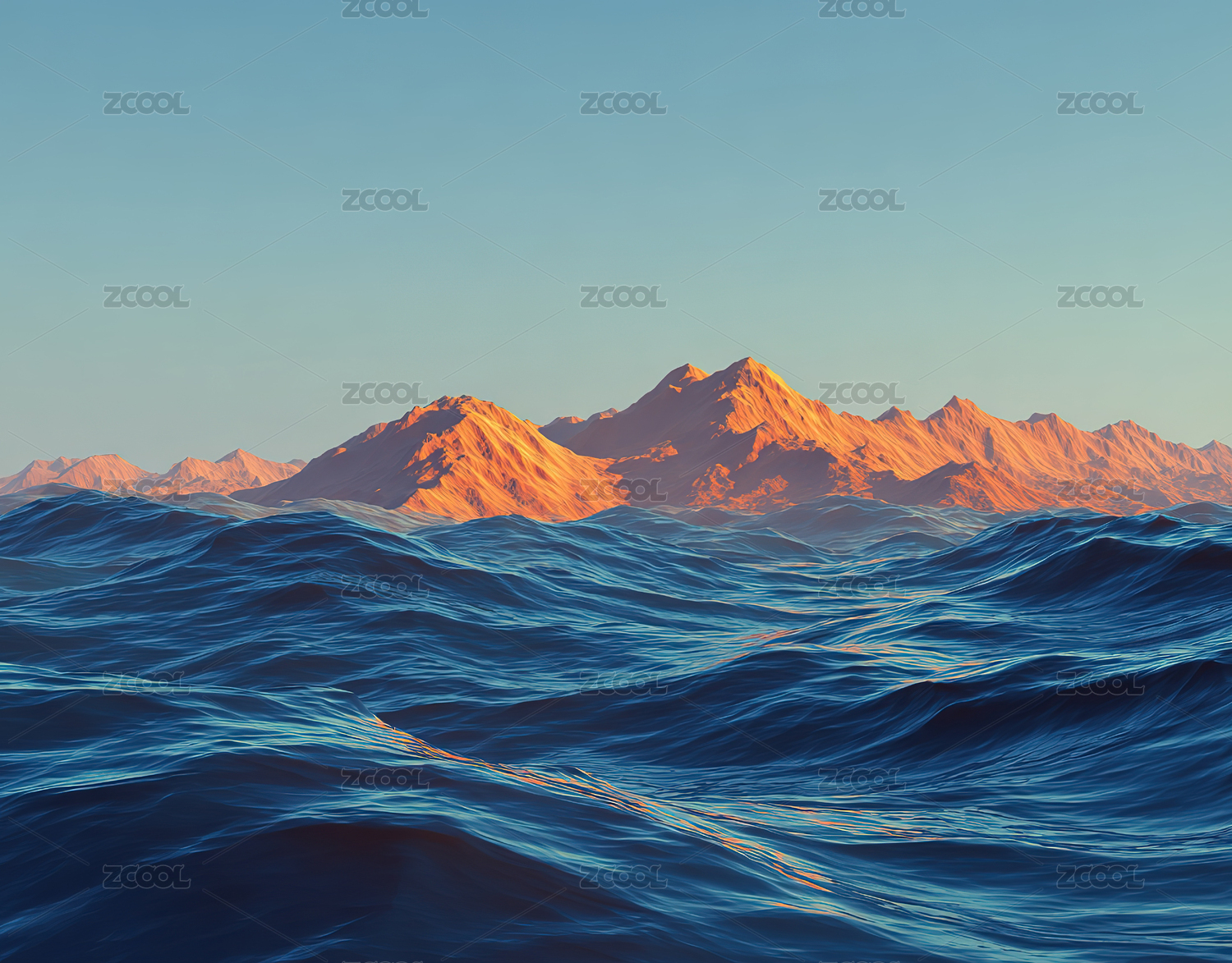 山脉,海洋,日落,波浪,天空,远景,自然,景色,峰峦,水波