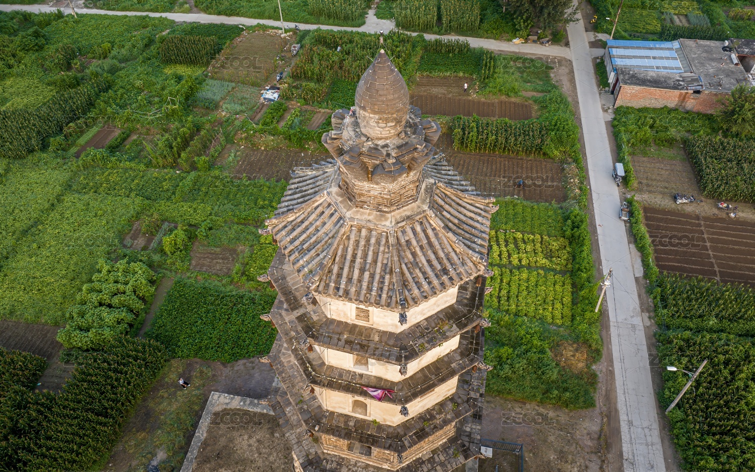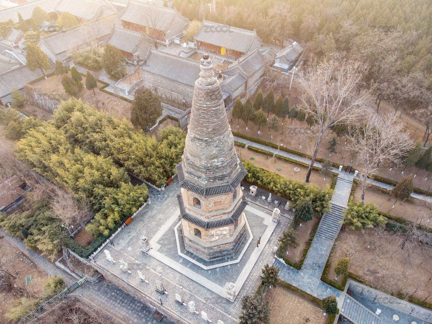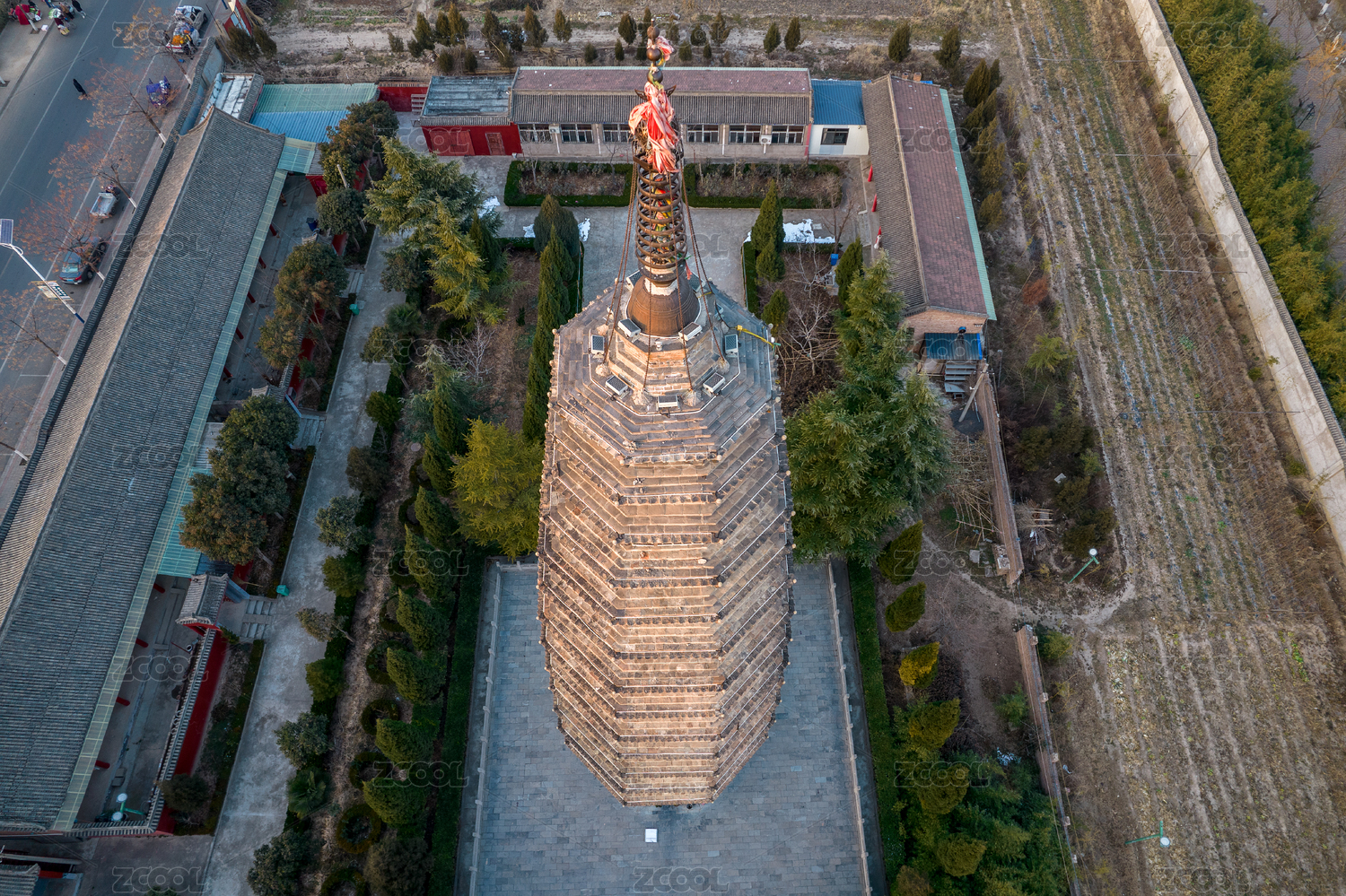 山西省,忻州市,代县,阿育王塔,古建筑,鸟瞰,宝塔,城镇,建筑,文化古迹
