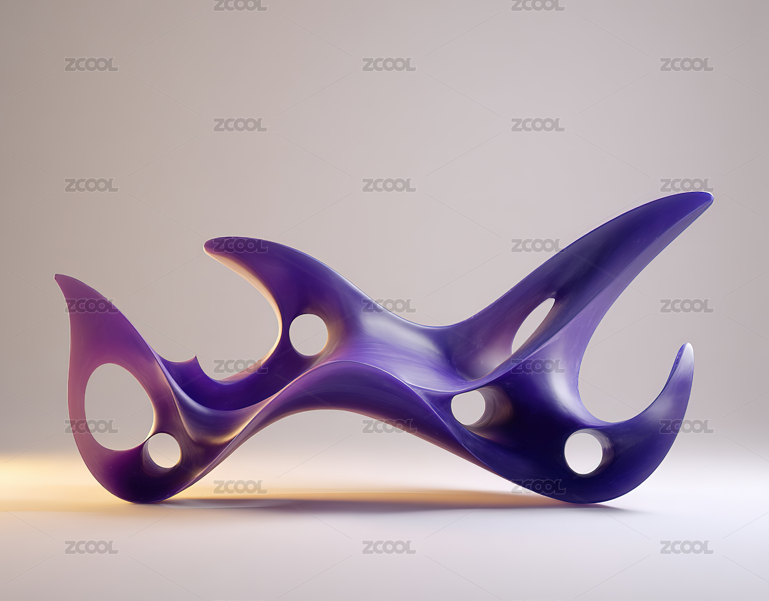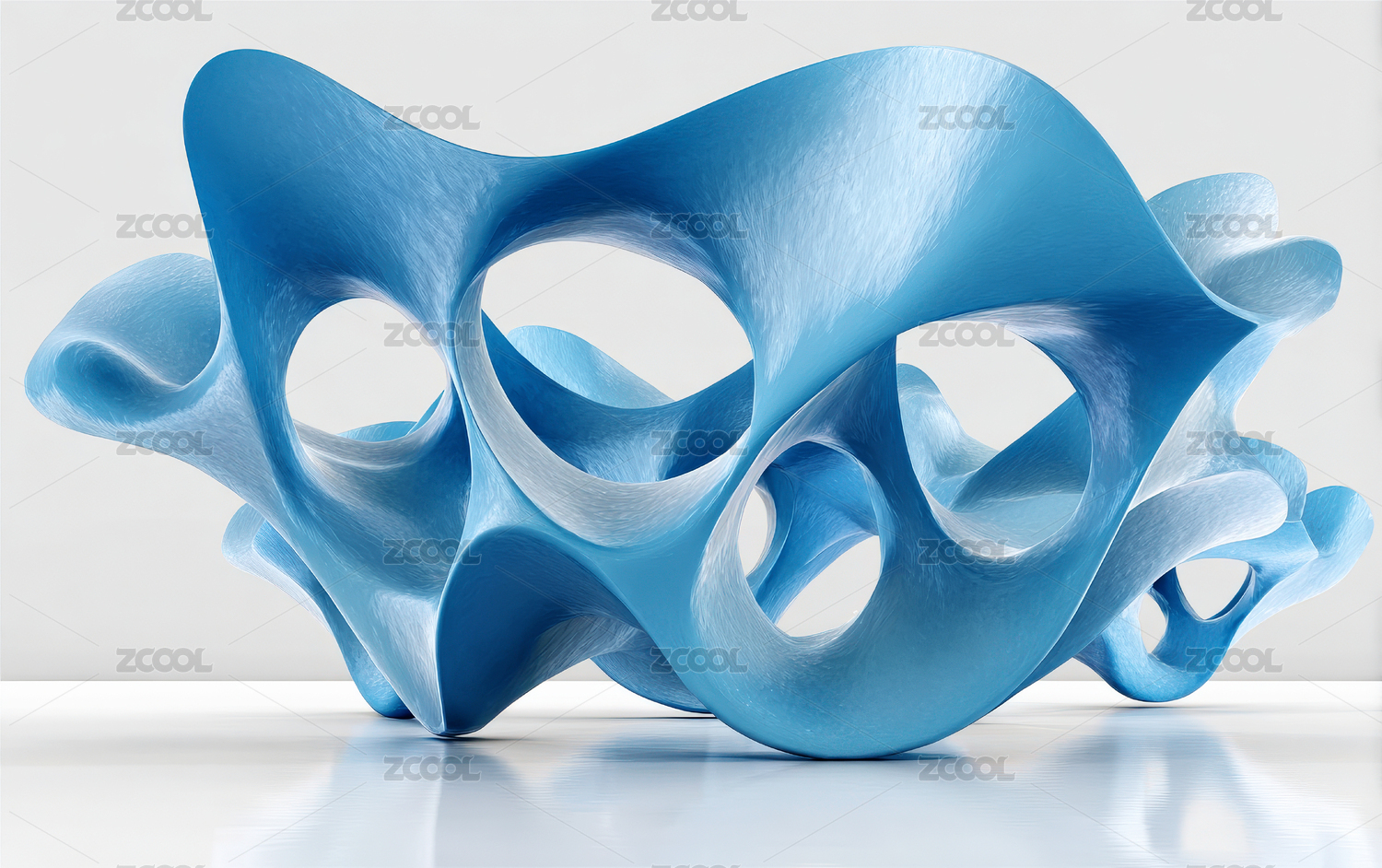 雕塑,抽象,蓝橙,渐变,现代,艺术,曲线,光滑,透明,光影