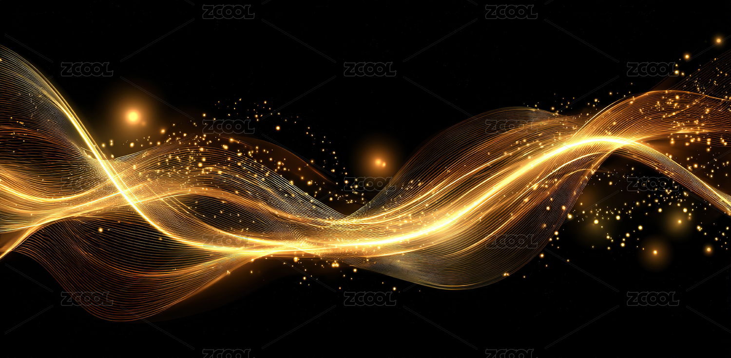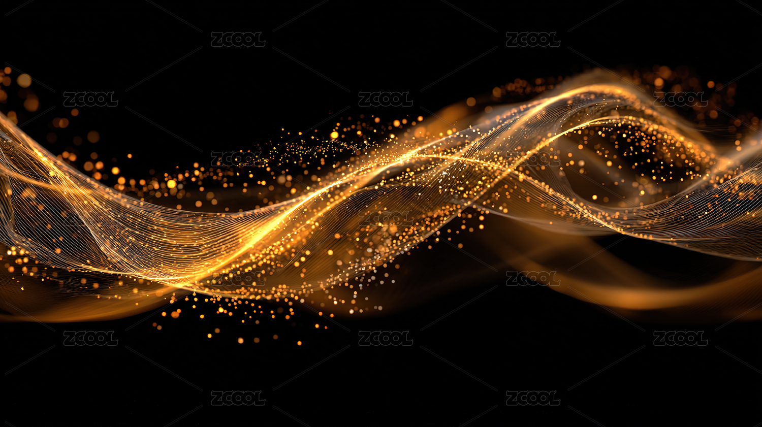 光轨,金色,流动,背景,黑色,波浪,光芒,粒子,闪烁,未来