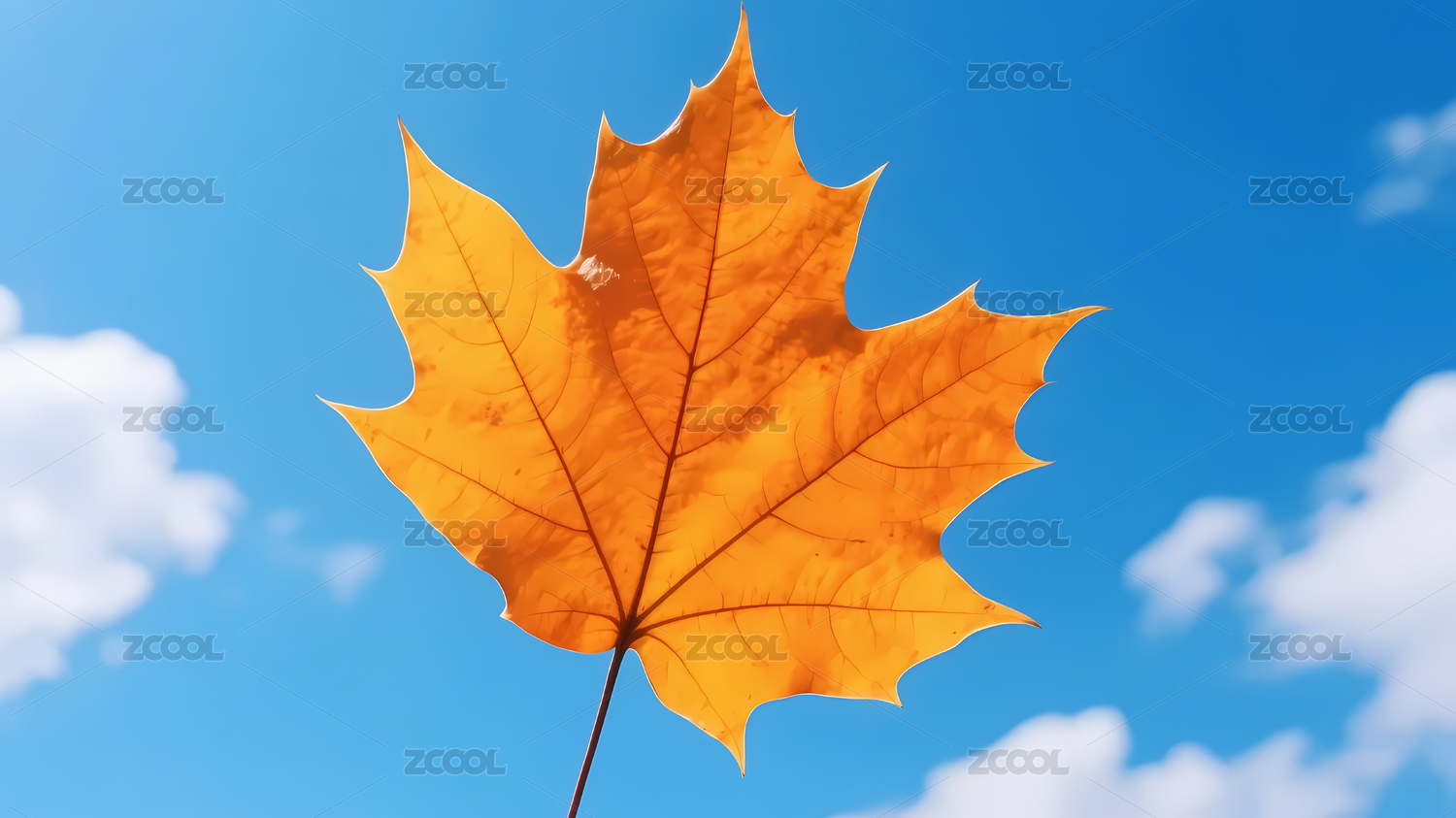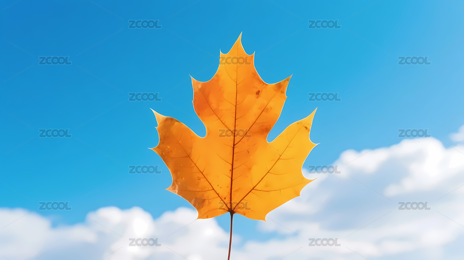橙黄枫叶映衬蓝天白云