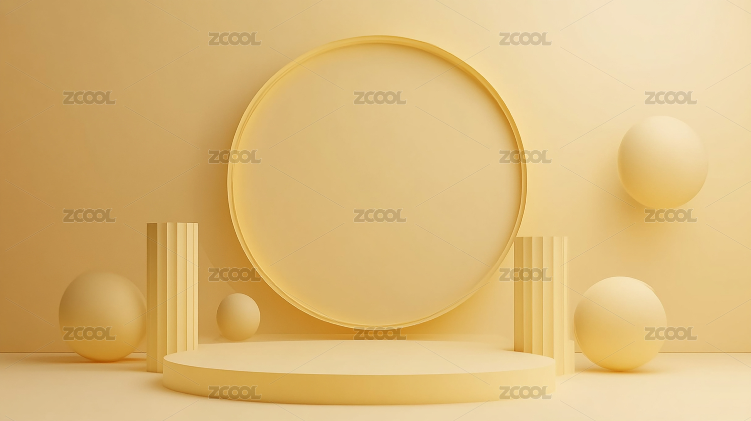 几何,造型,展示,平台,球体,圆柱,拱门,柔和,色调,极简